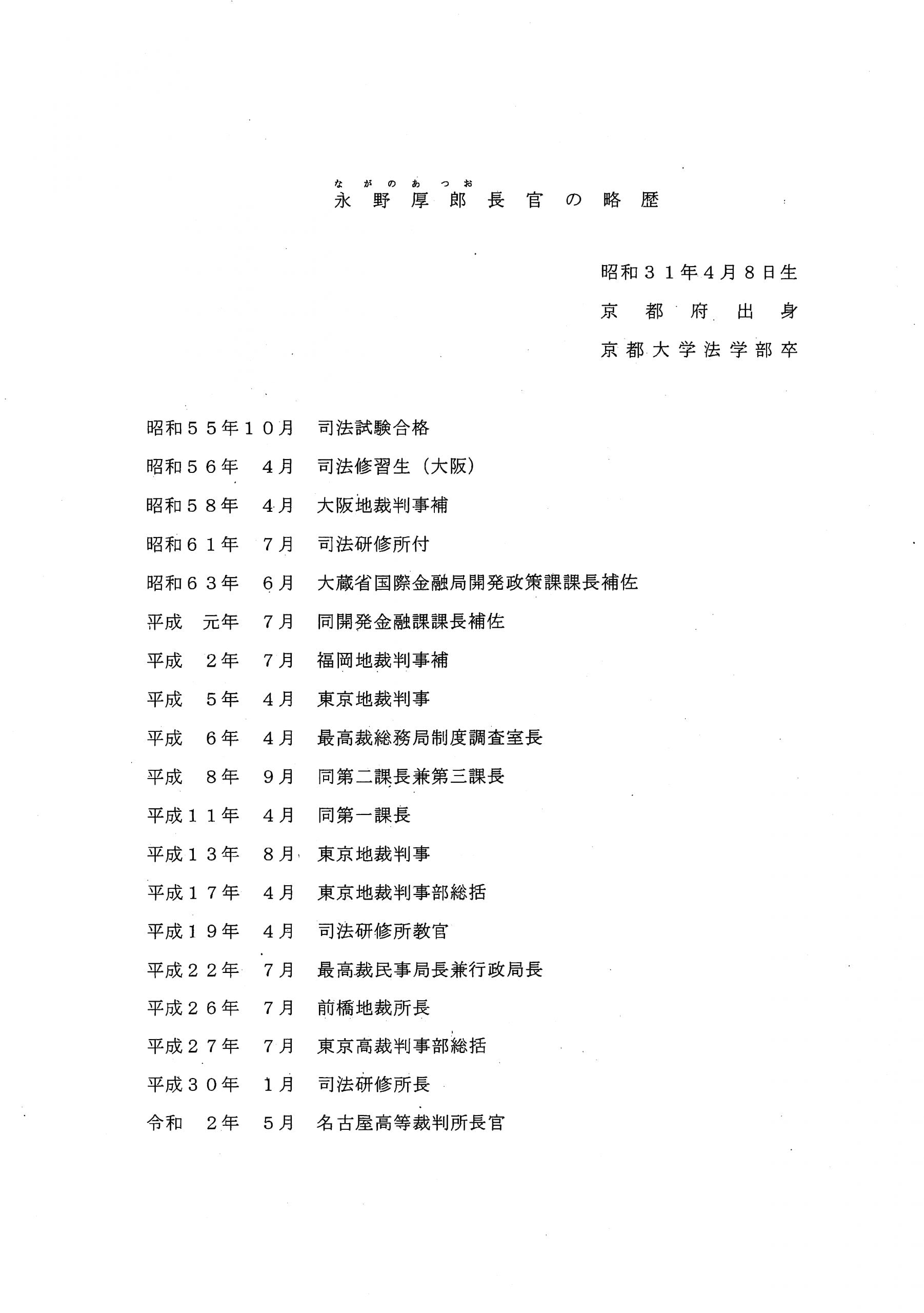 ・ 安浪亮介大阪高裁長官の就任記者会見関係文書(平成31年1月30日実施分)