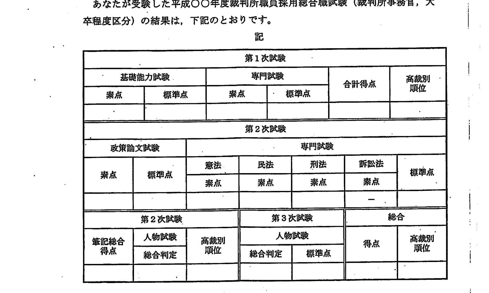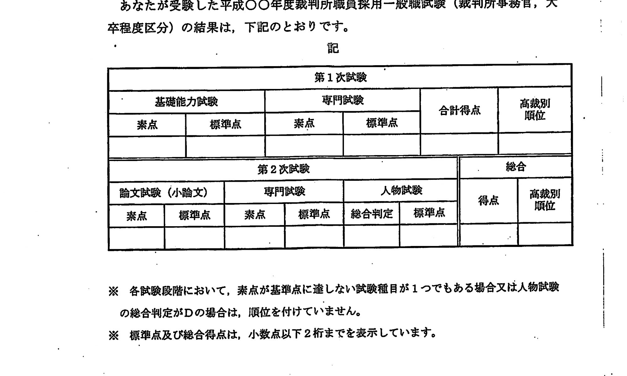 301209-総合職の試験結果通知書(裁判所事務官,大卒程度�...