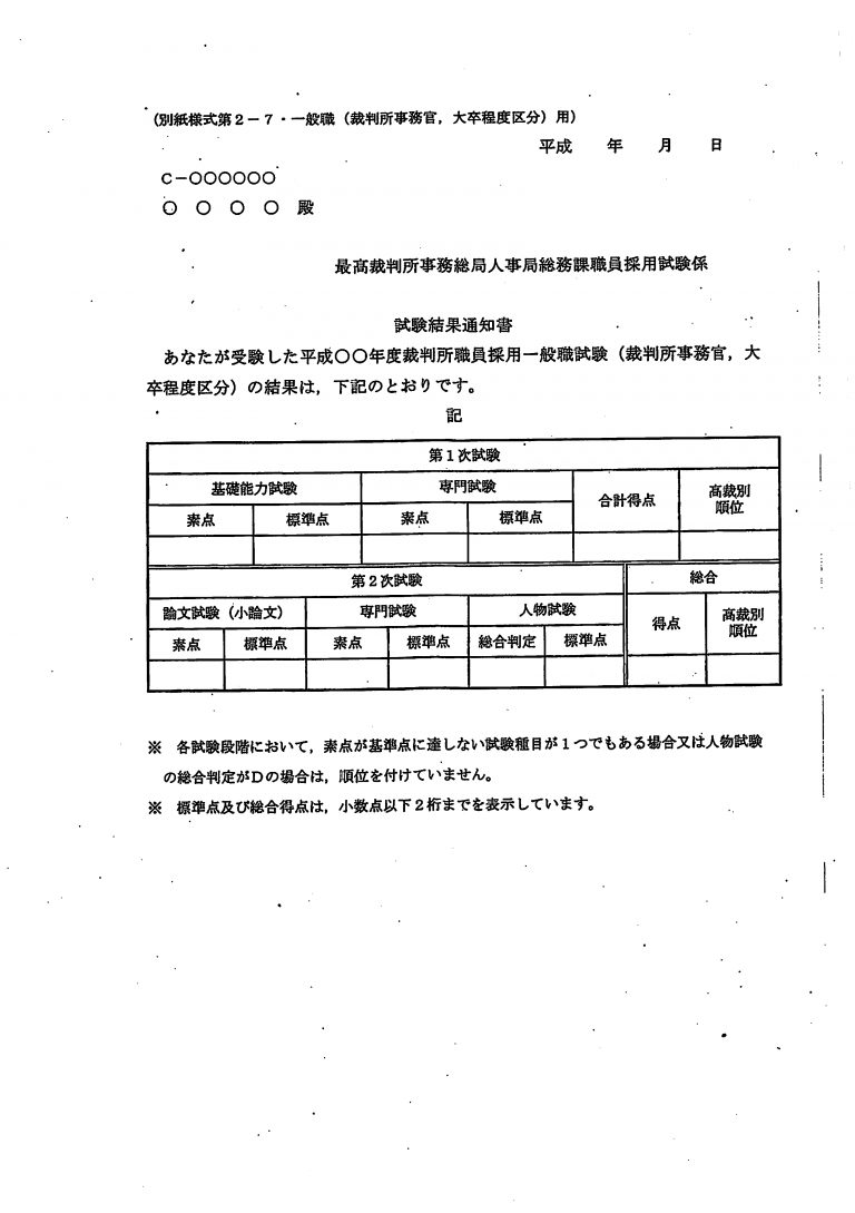 301209-一般職の試験結果通知書(裁判所事務官,大卒程度�...