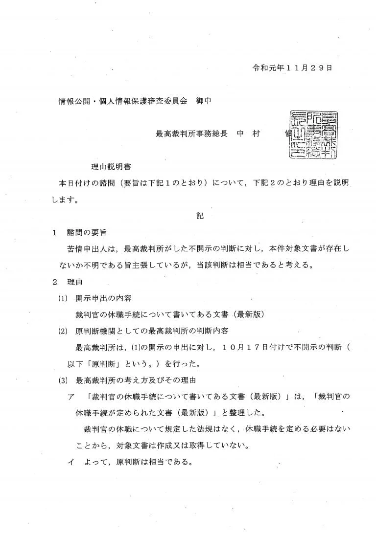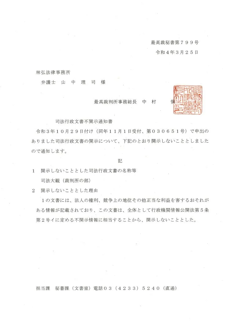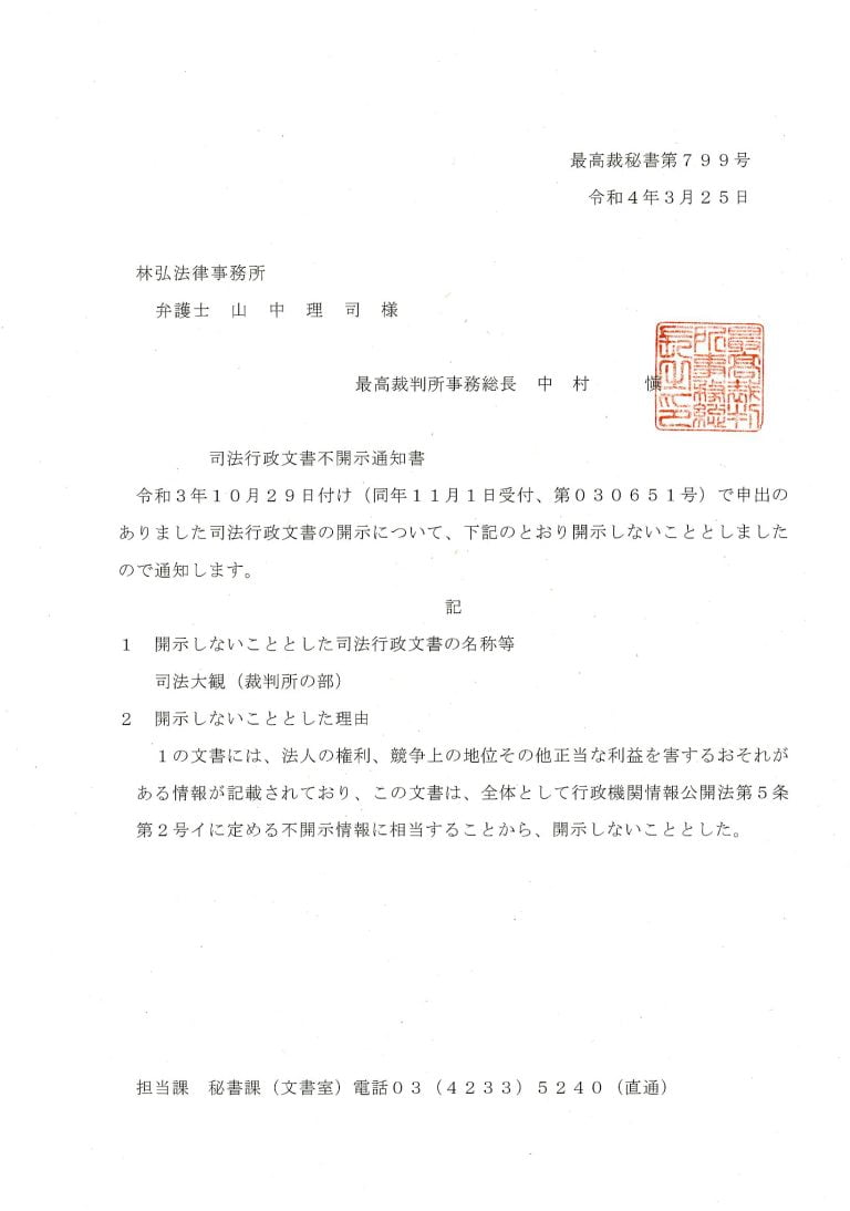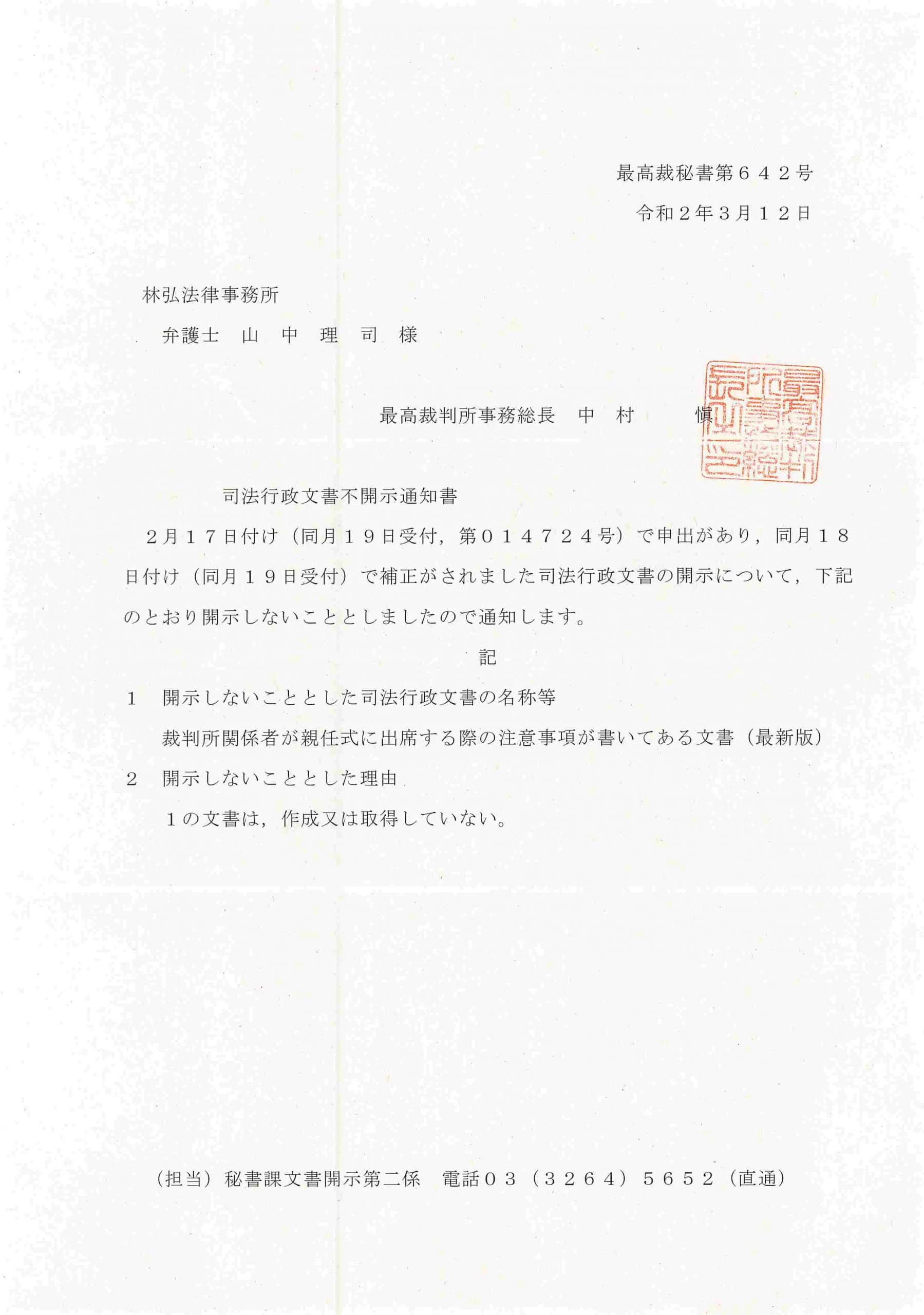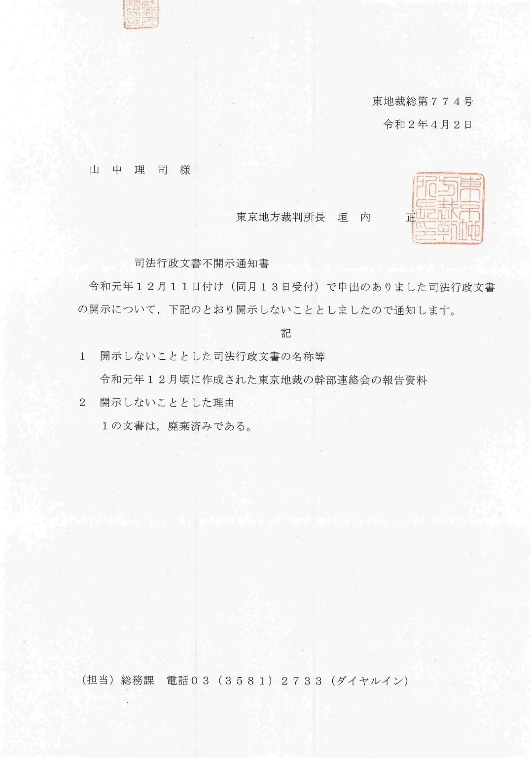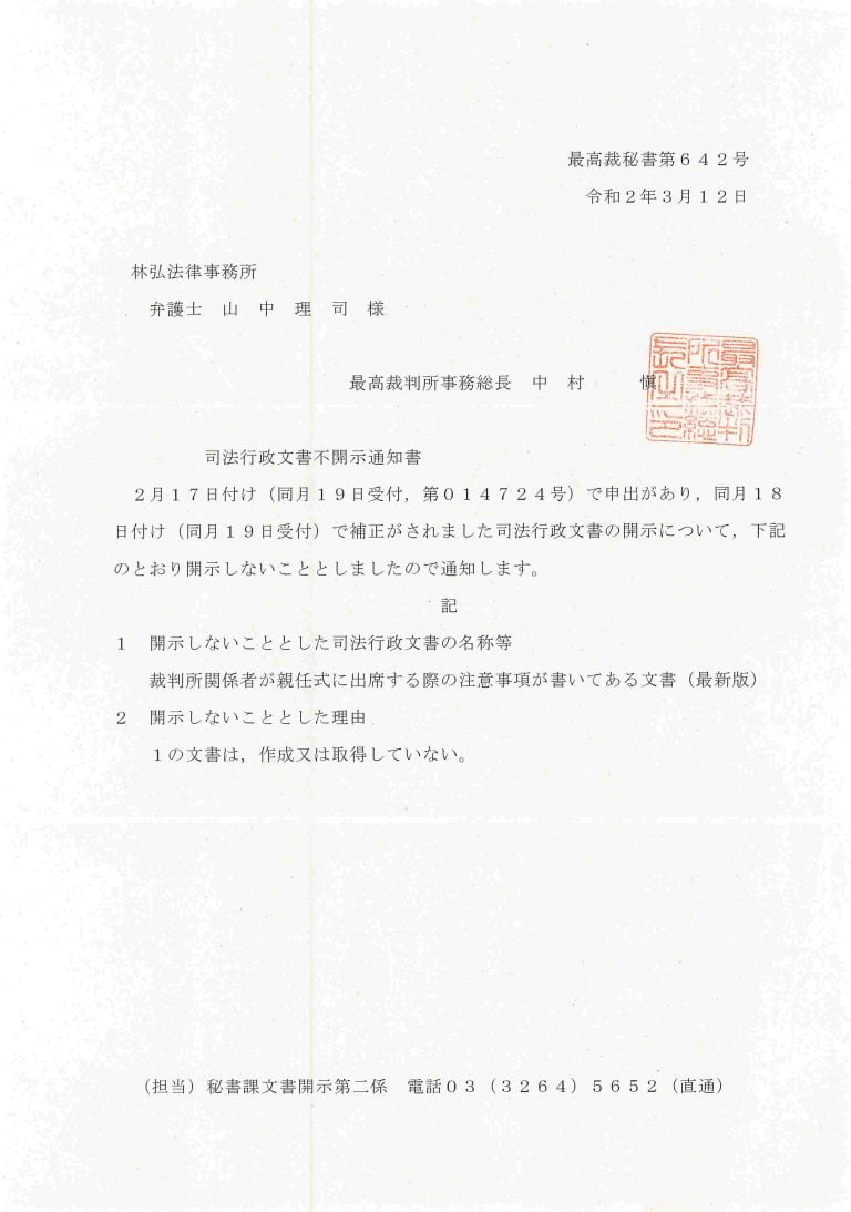 290519-司法行政文書不開示通知書(最高裁判所事務総局が�...