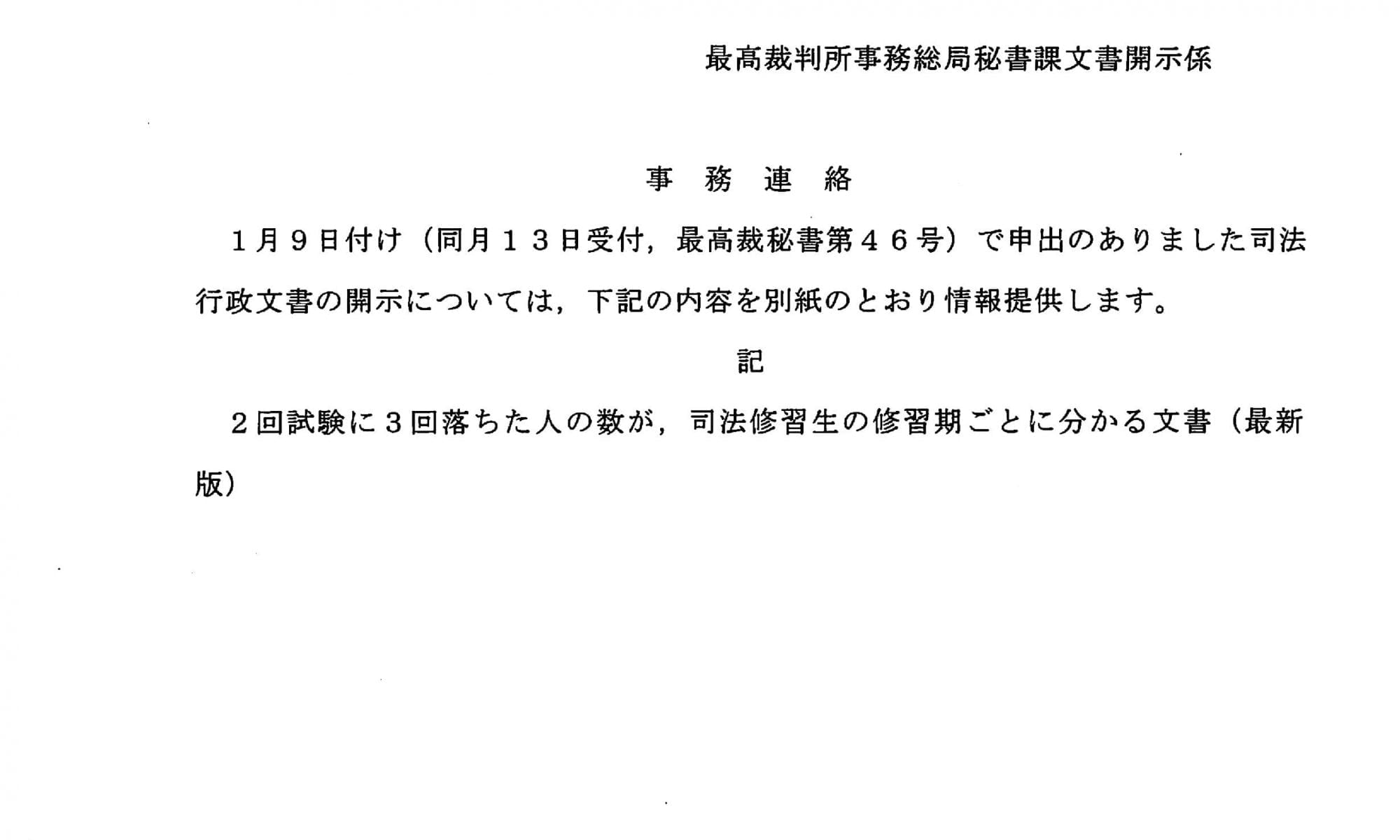 R010628-不開示通知書(最高裁判所が,全国の下級裁判所向...
