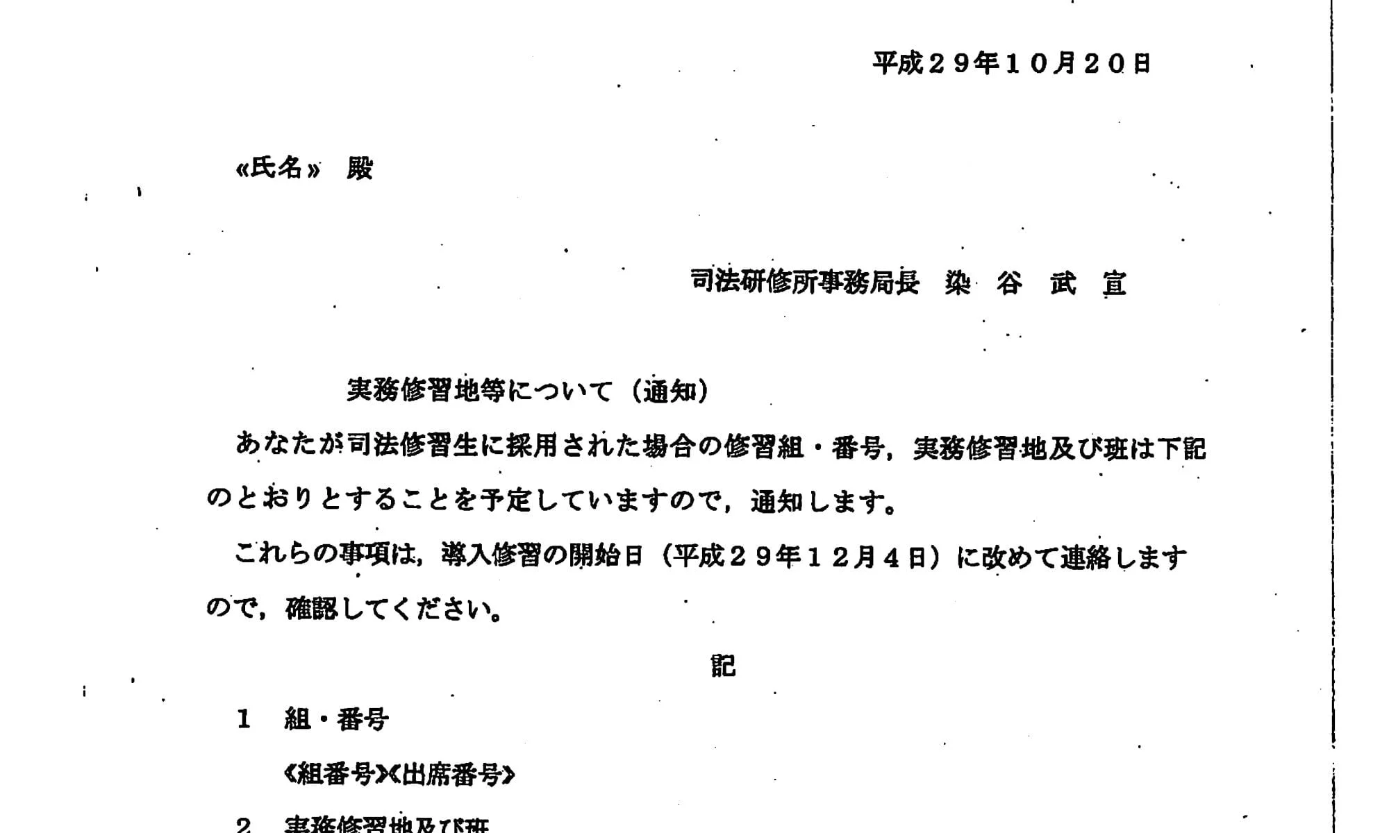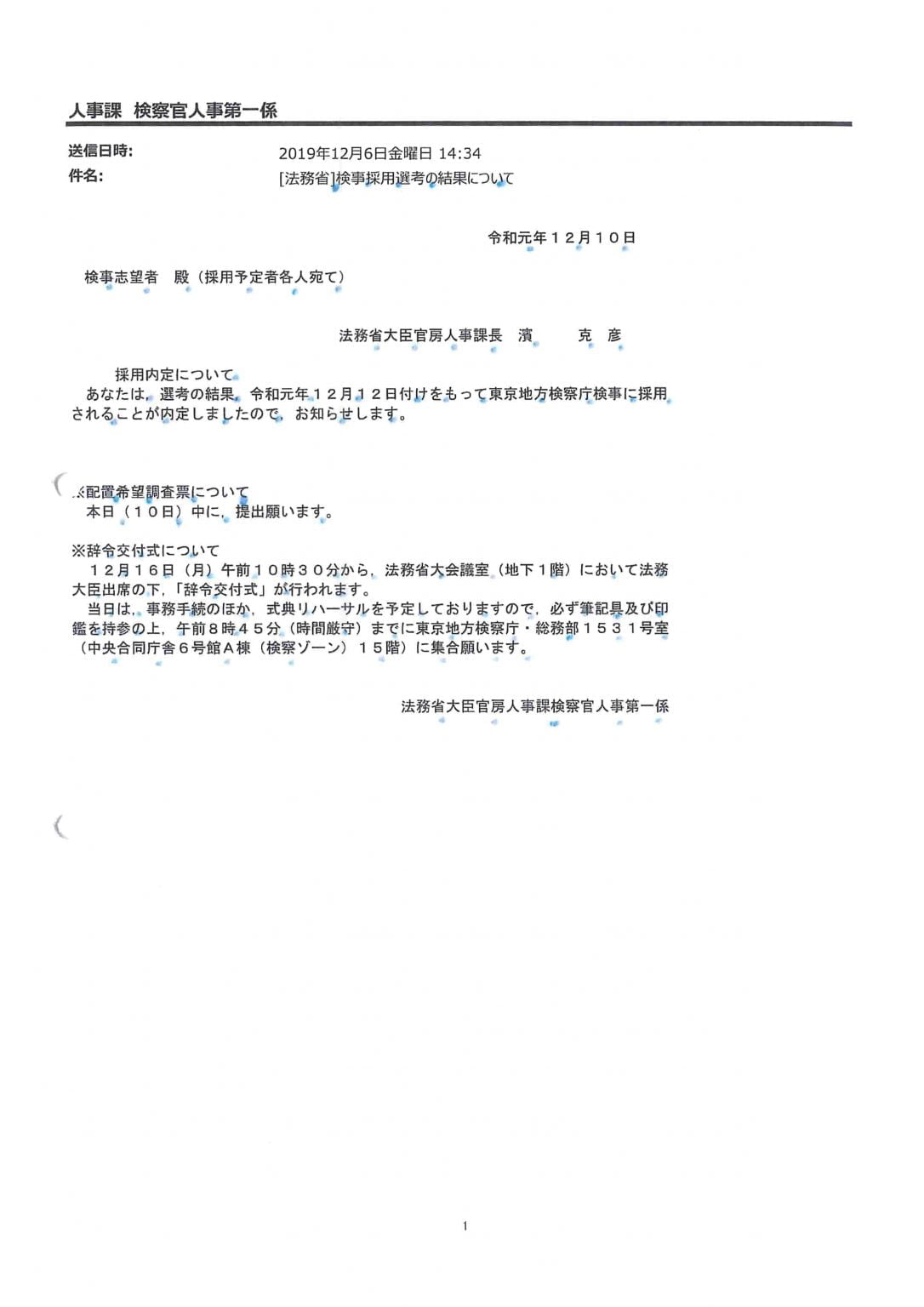 72期新任検事に対する採用内定メール(令和元年12�...
