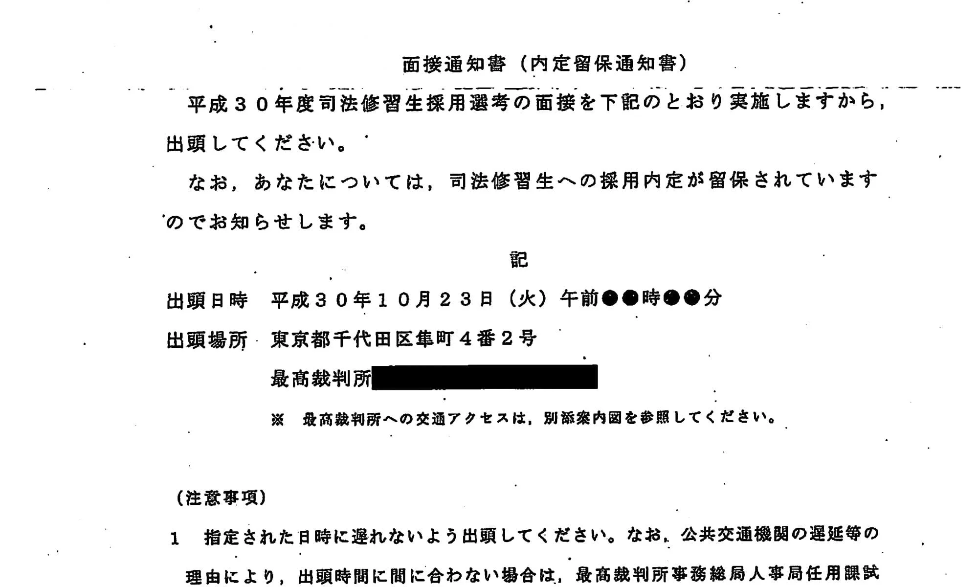 R010819-不開示通知書(司法修習生としての採用を希望する...