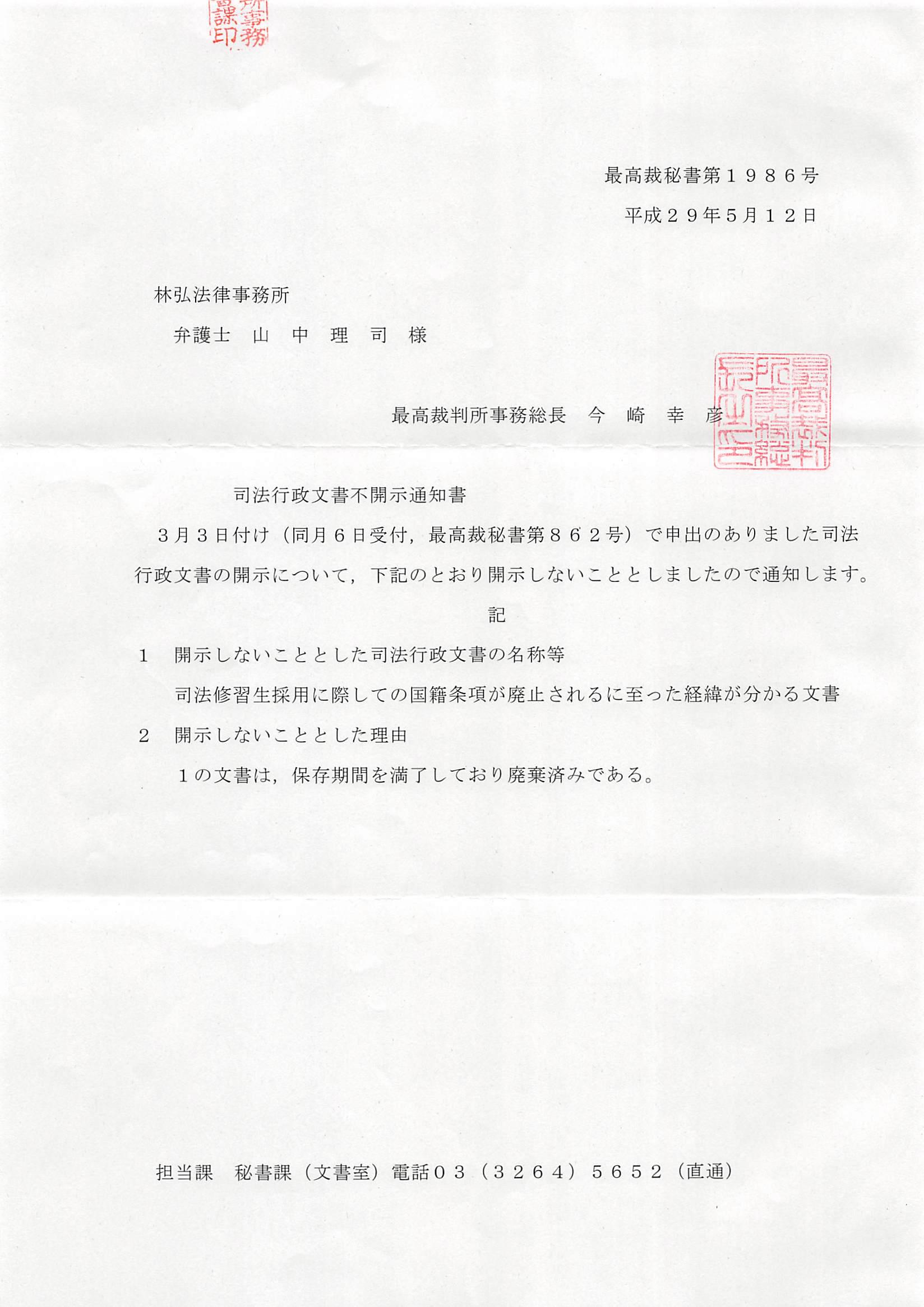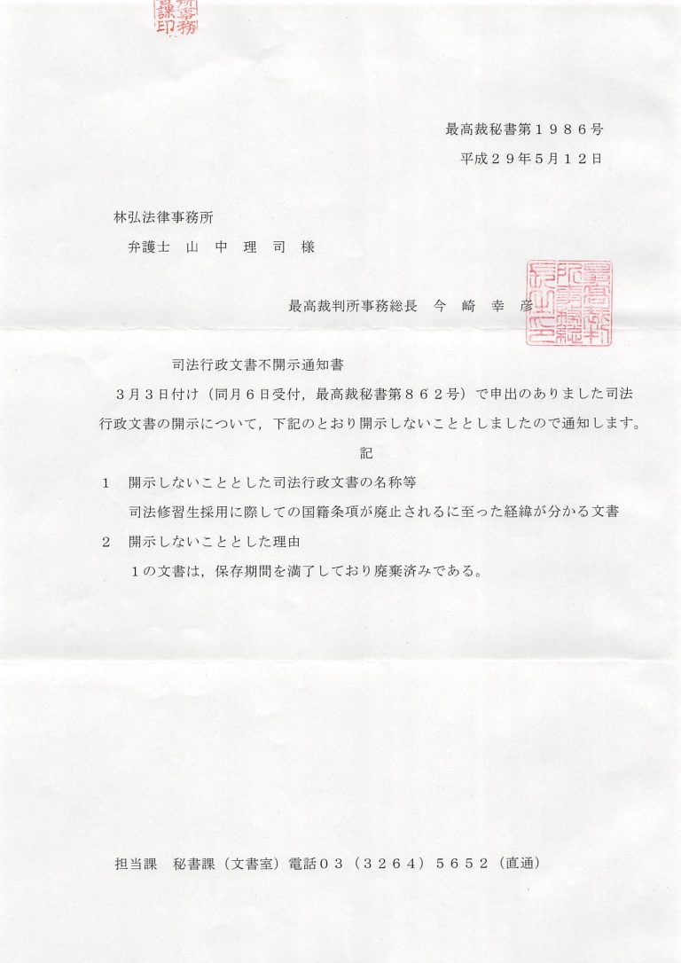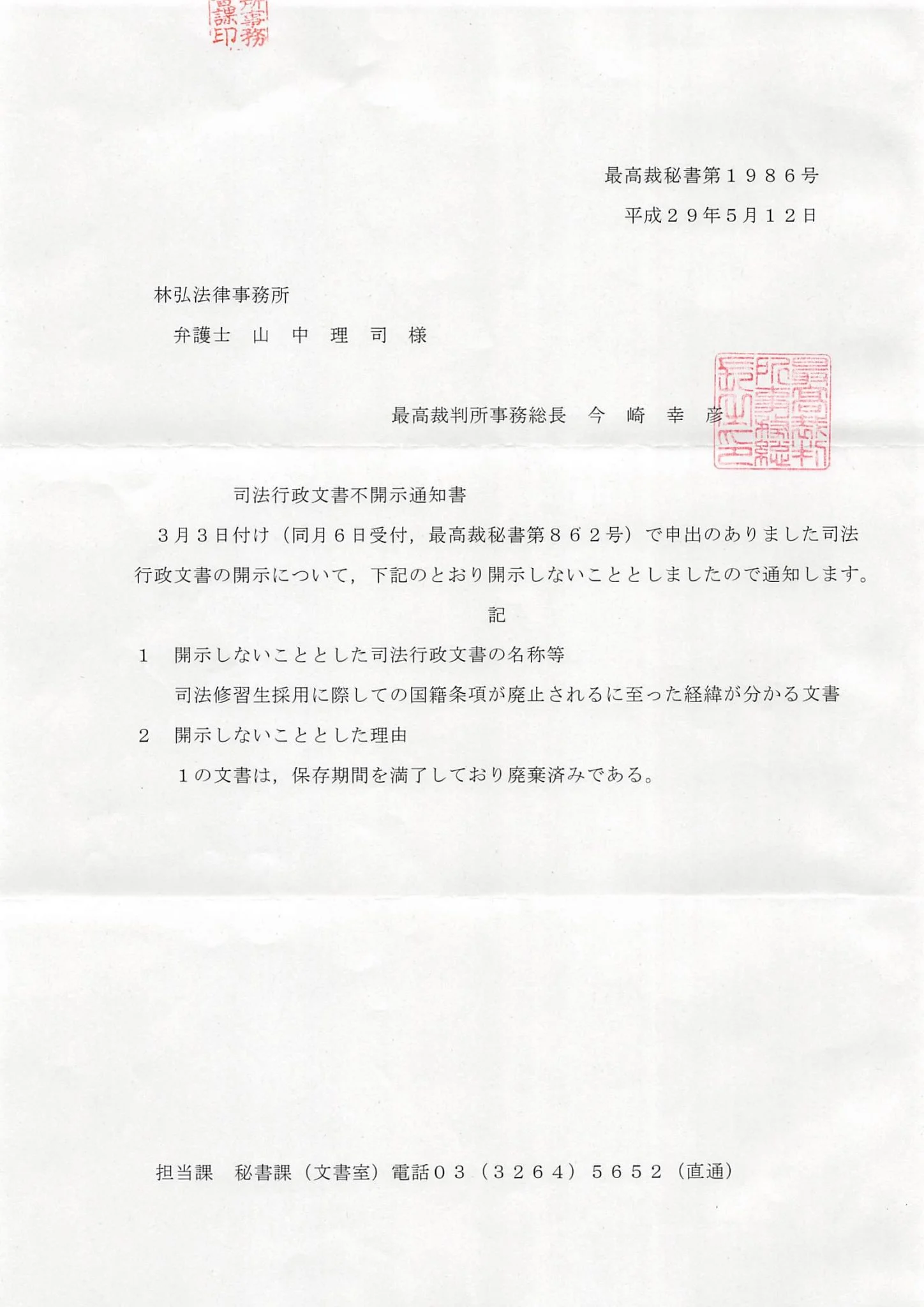 290512-最高裁の不開示通知書(司法修習生採用に際しての�...