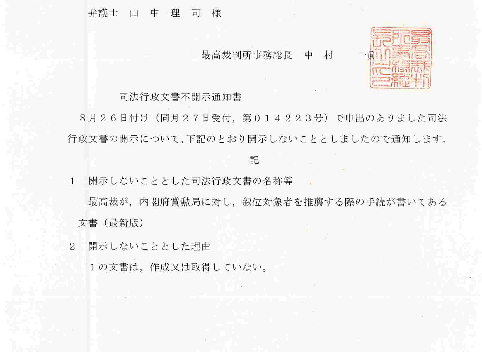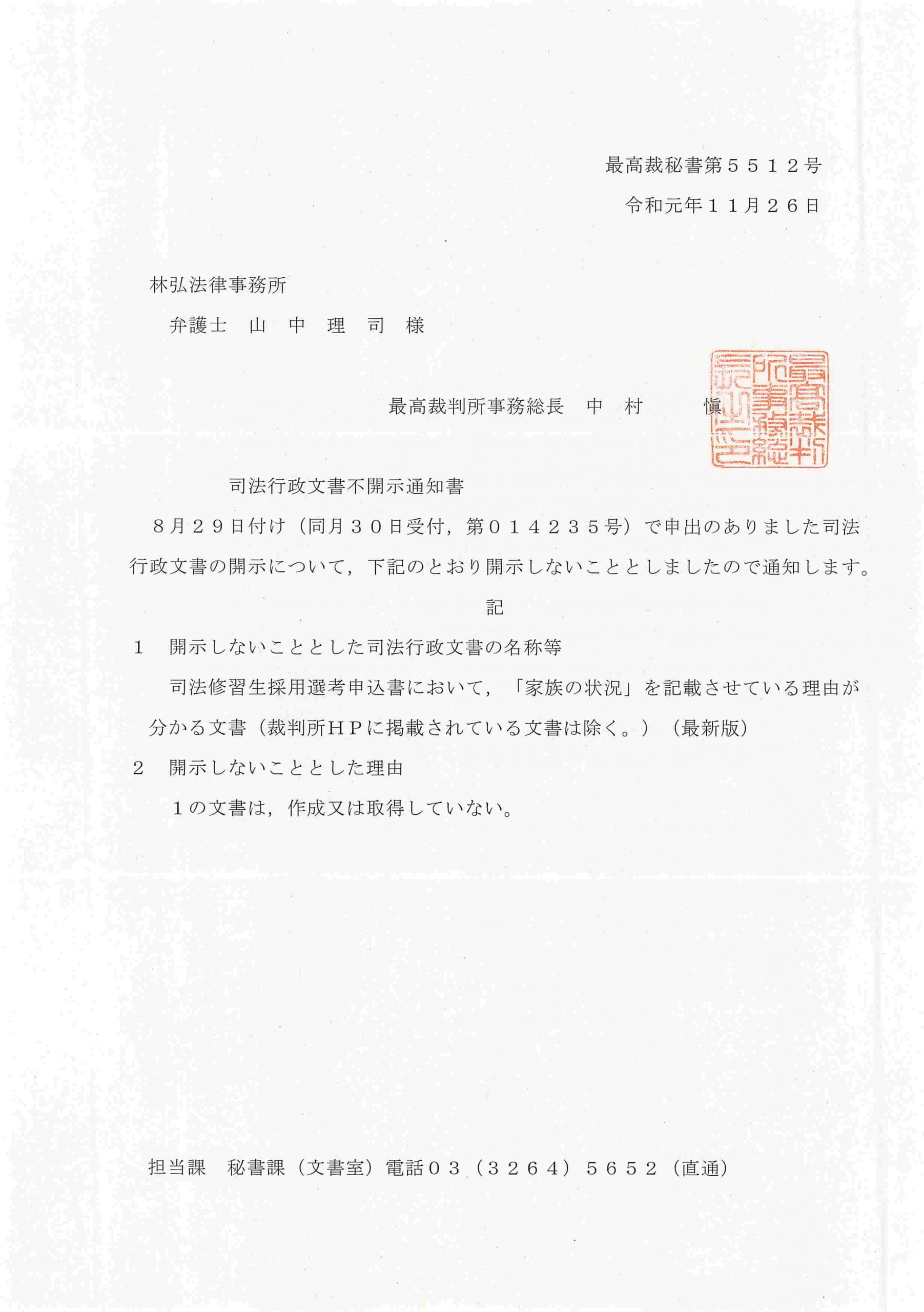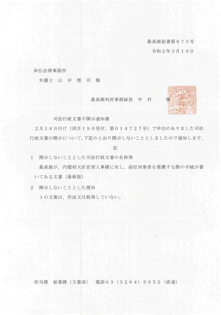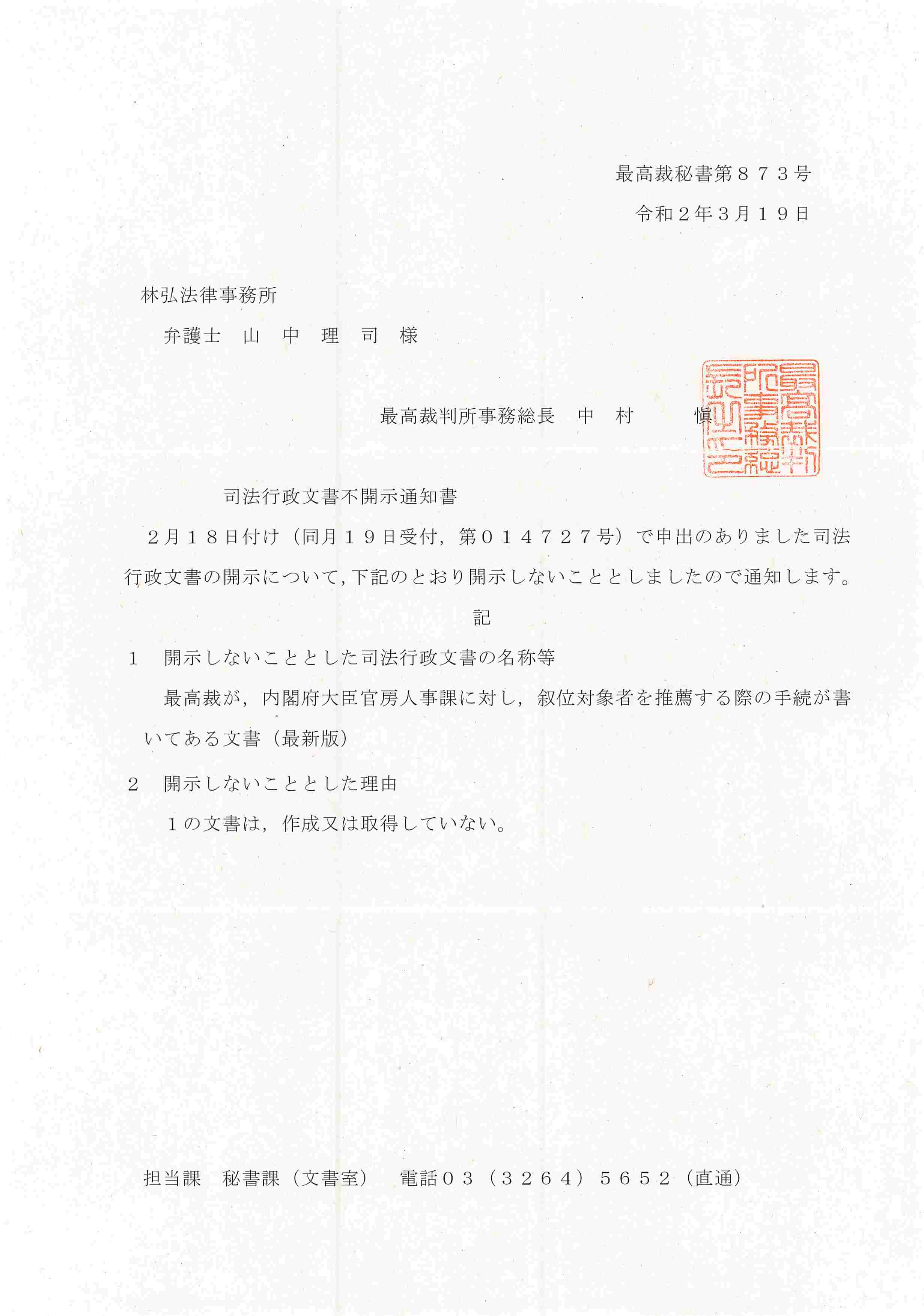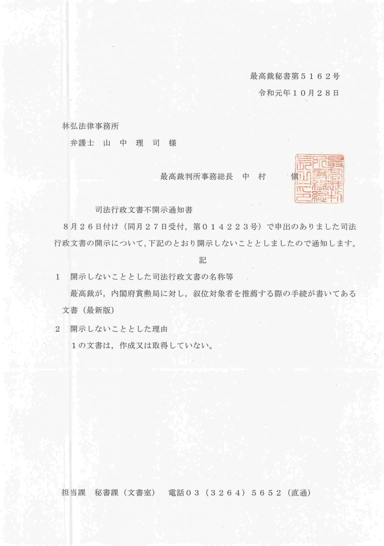 R010819-不開示通知書(最高裁が法務省から受領した,公募...