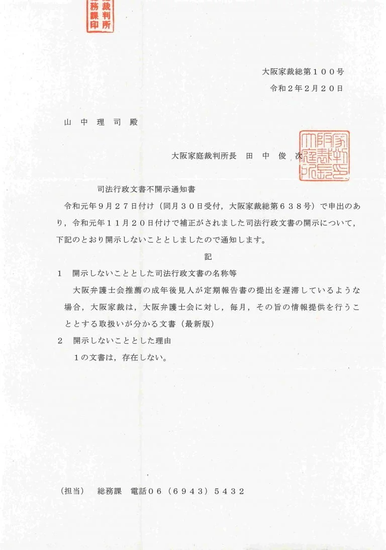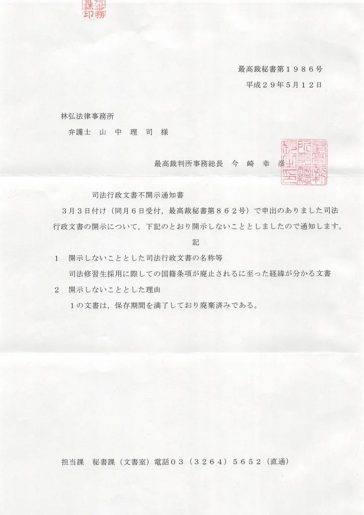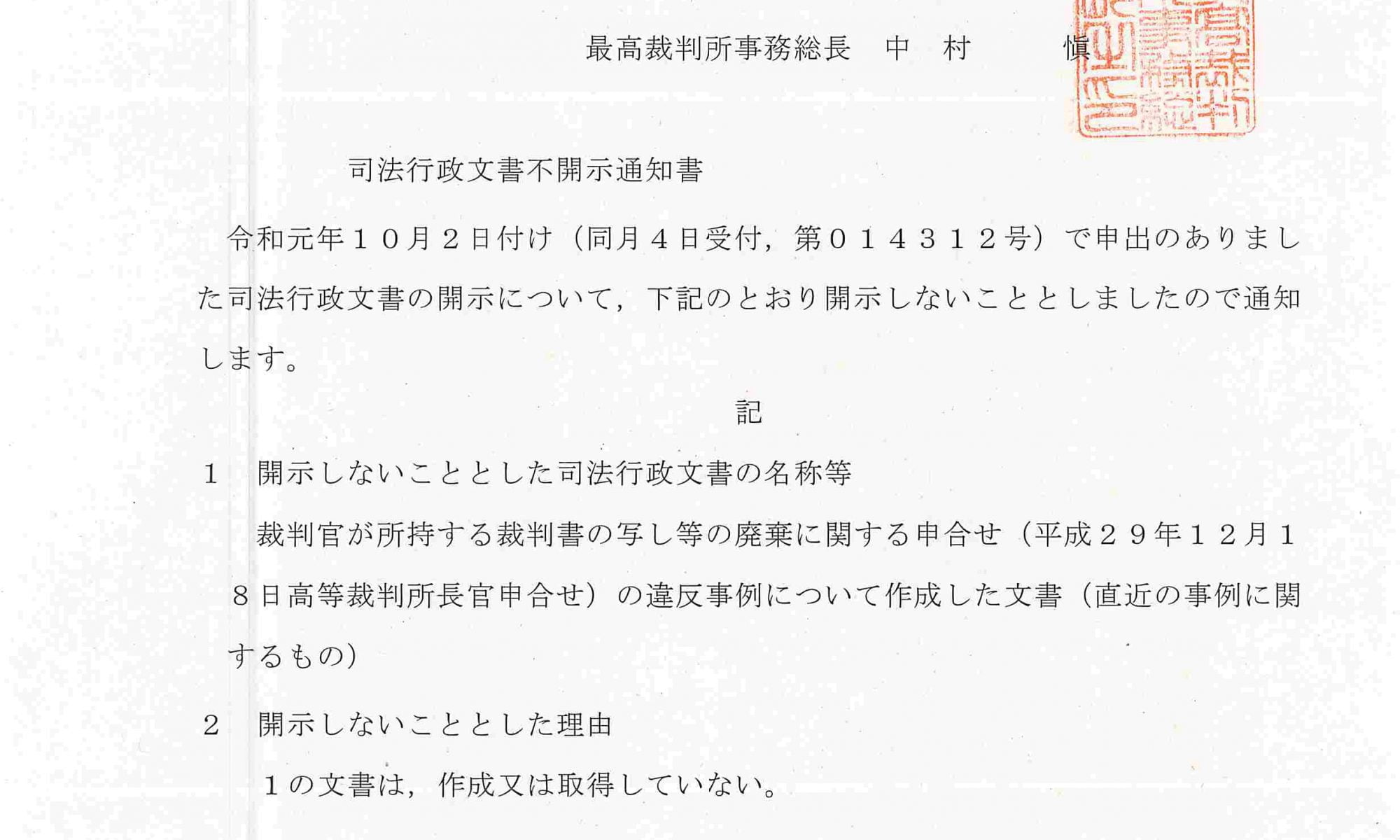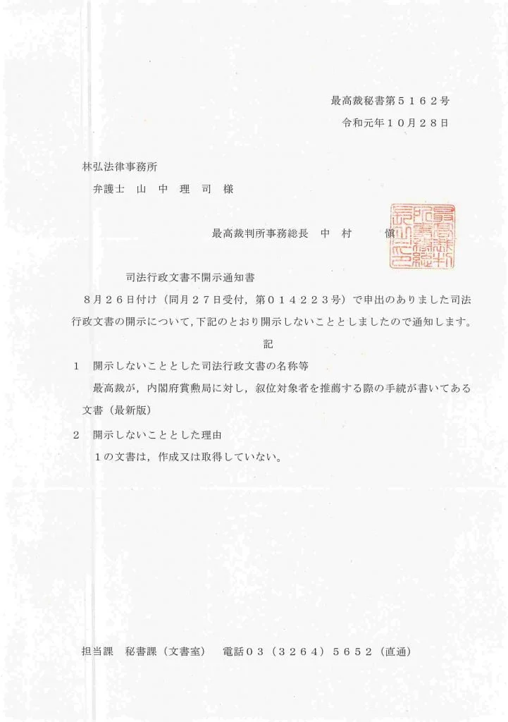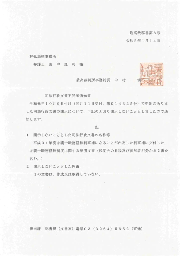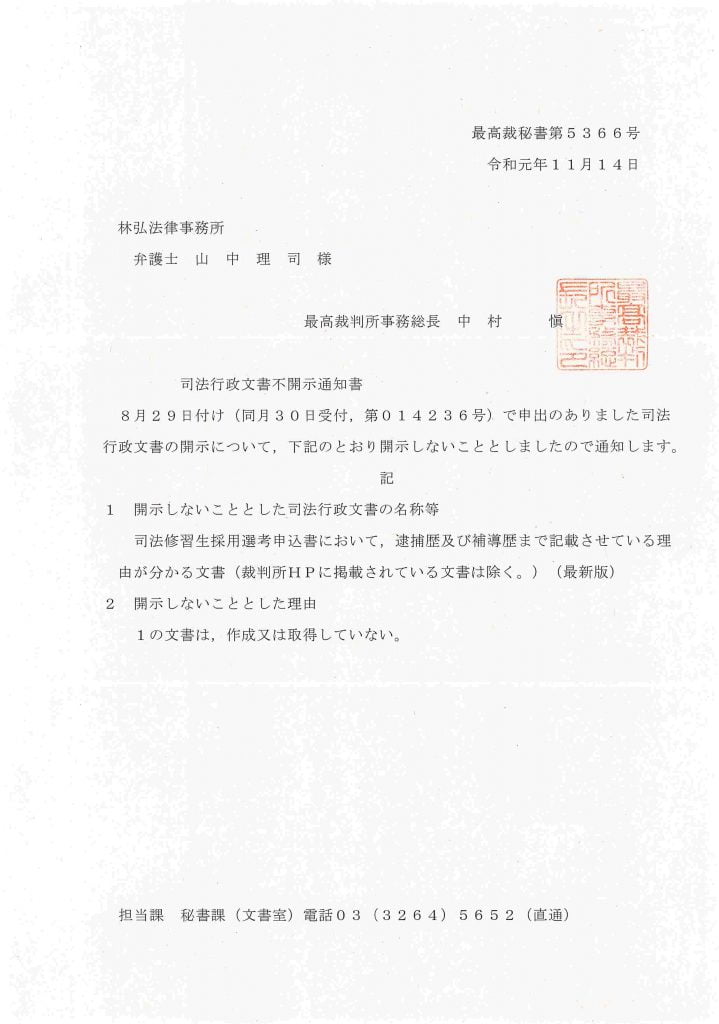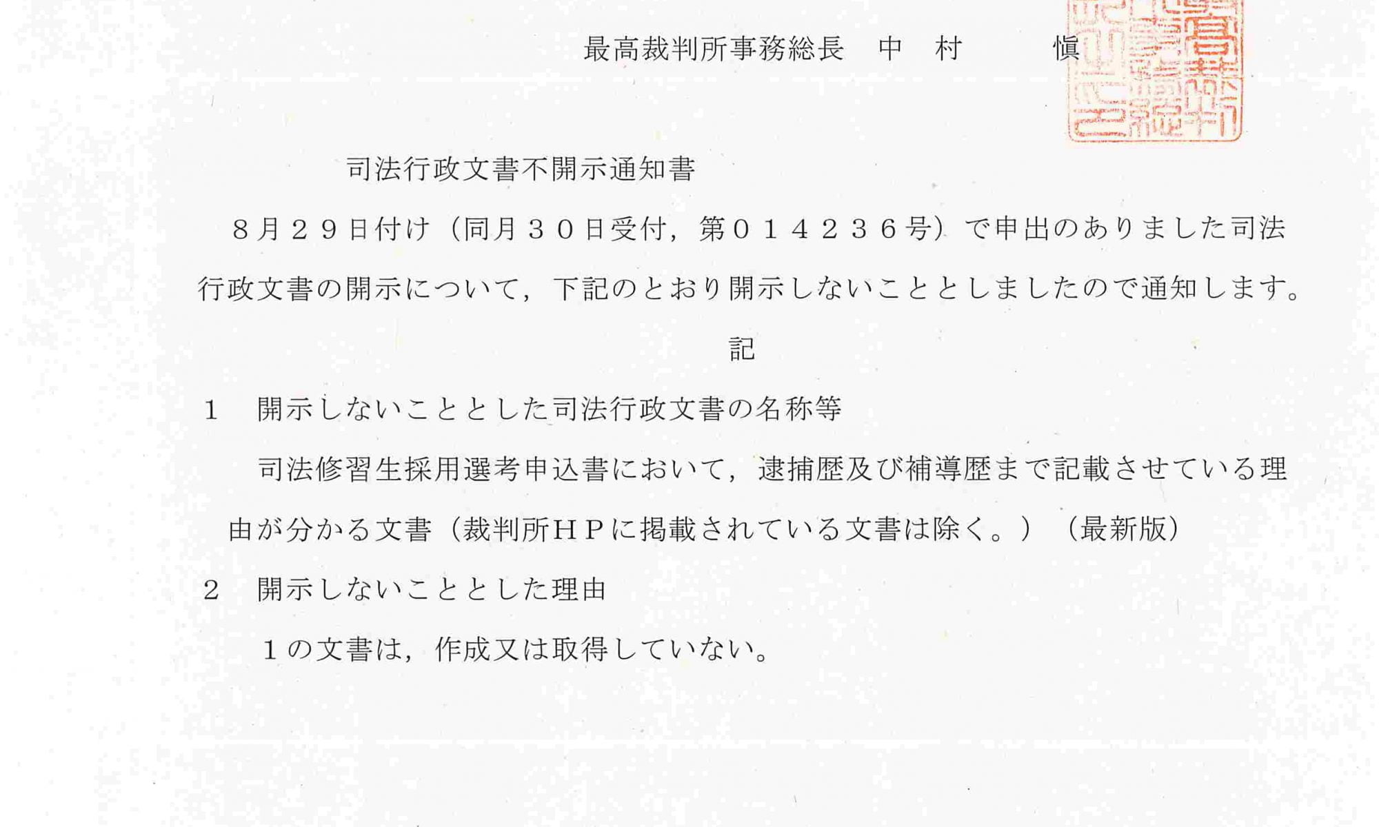 R010819-不開示通知書(最高裁が法務省から受領した,公募...