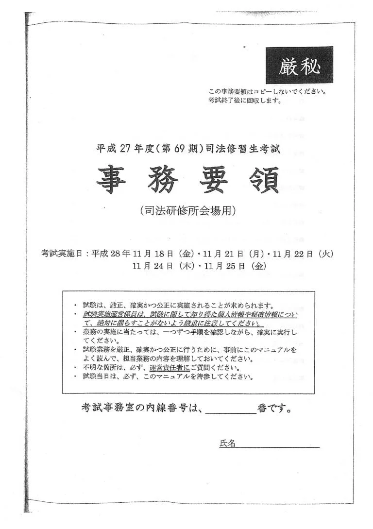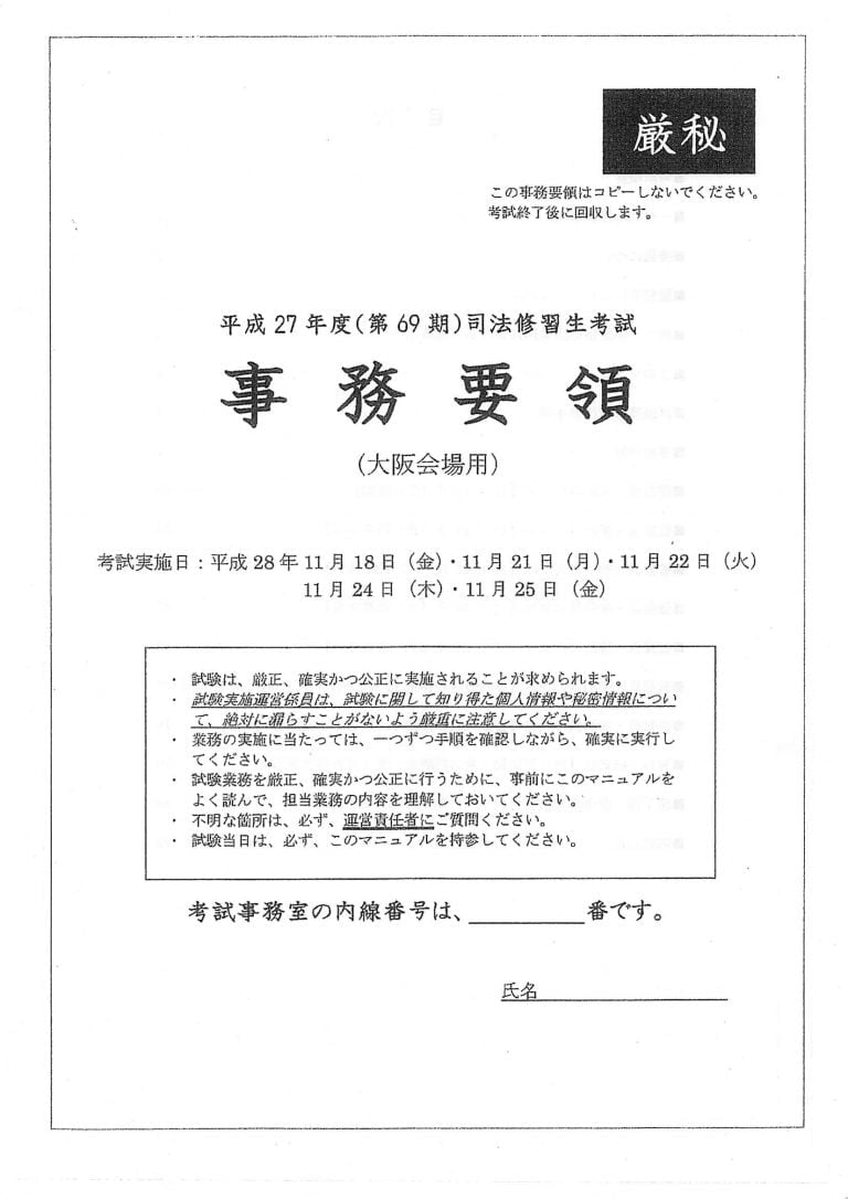 (表紙)平成27年度(第69期)司法修習生考試事務�...