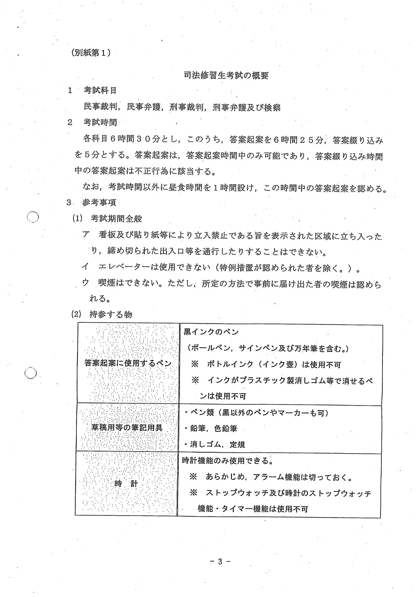 72期二回試験の期日及び場所等を定めた文書(令和元�...