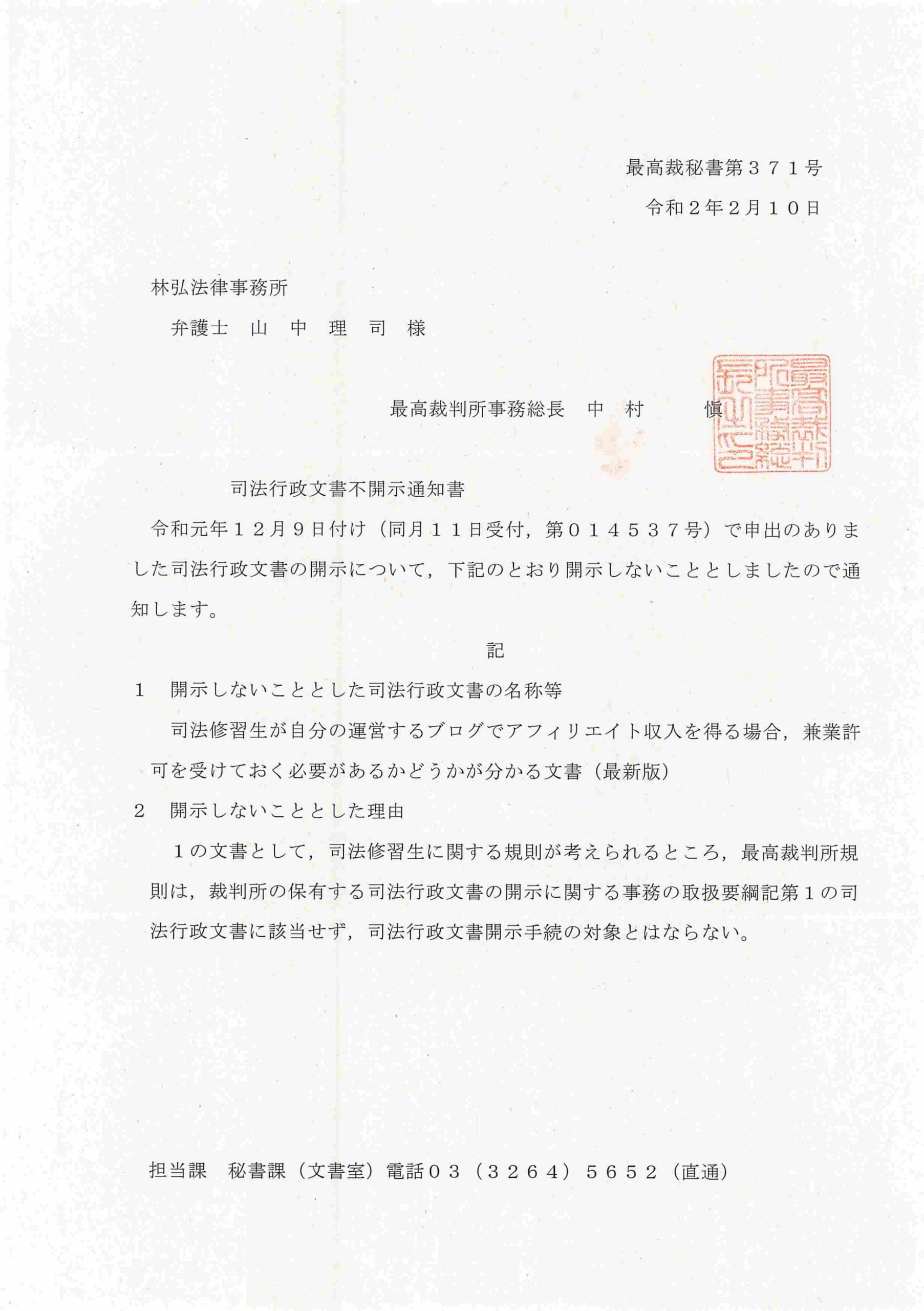 290424-最高裁の不開示通知書(最高裁判所が司法修習生に�...