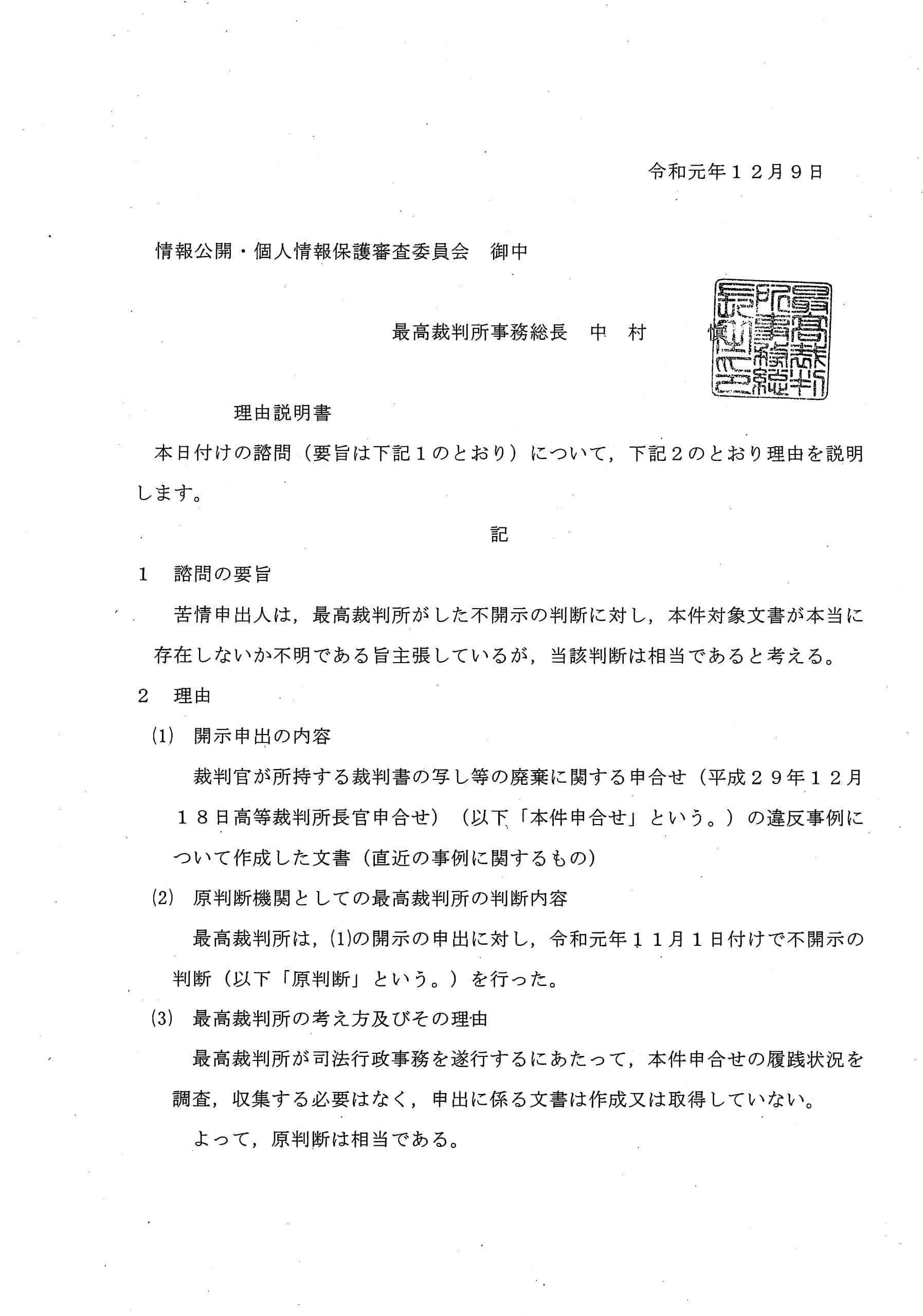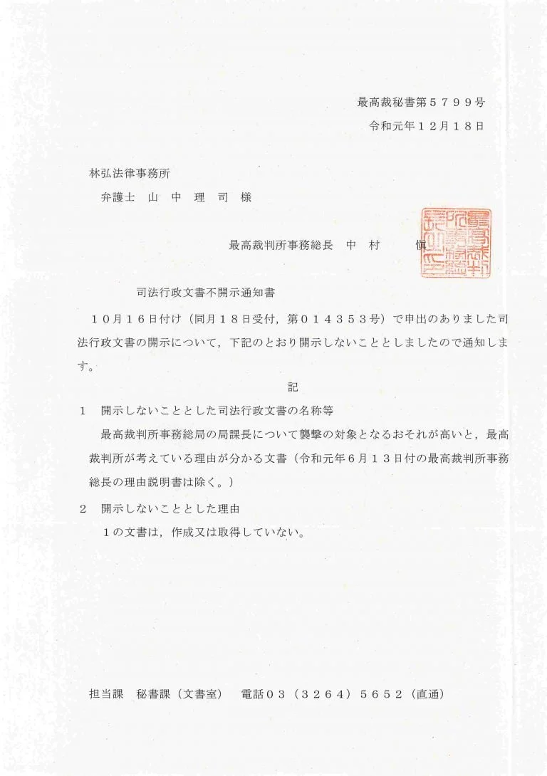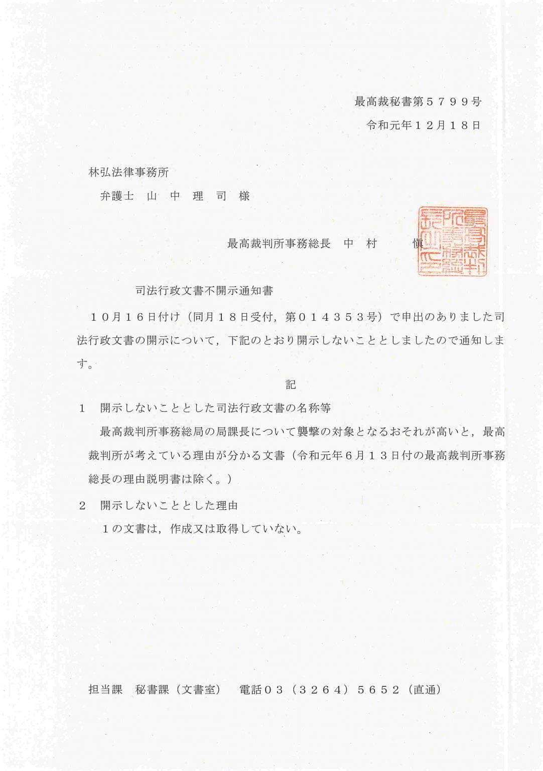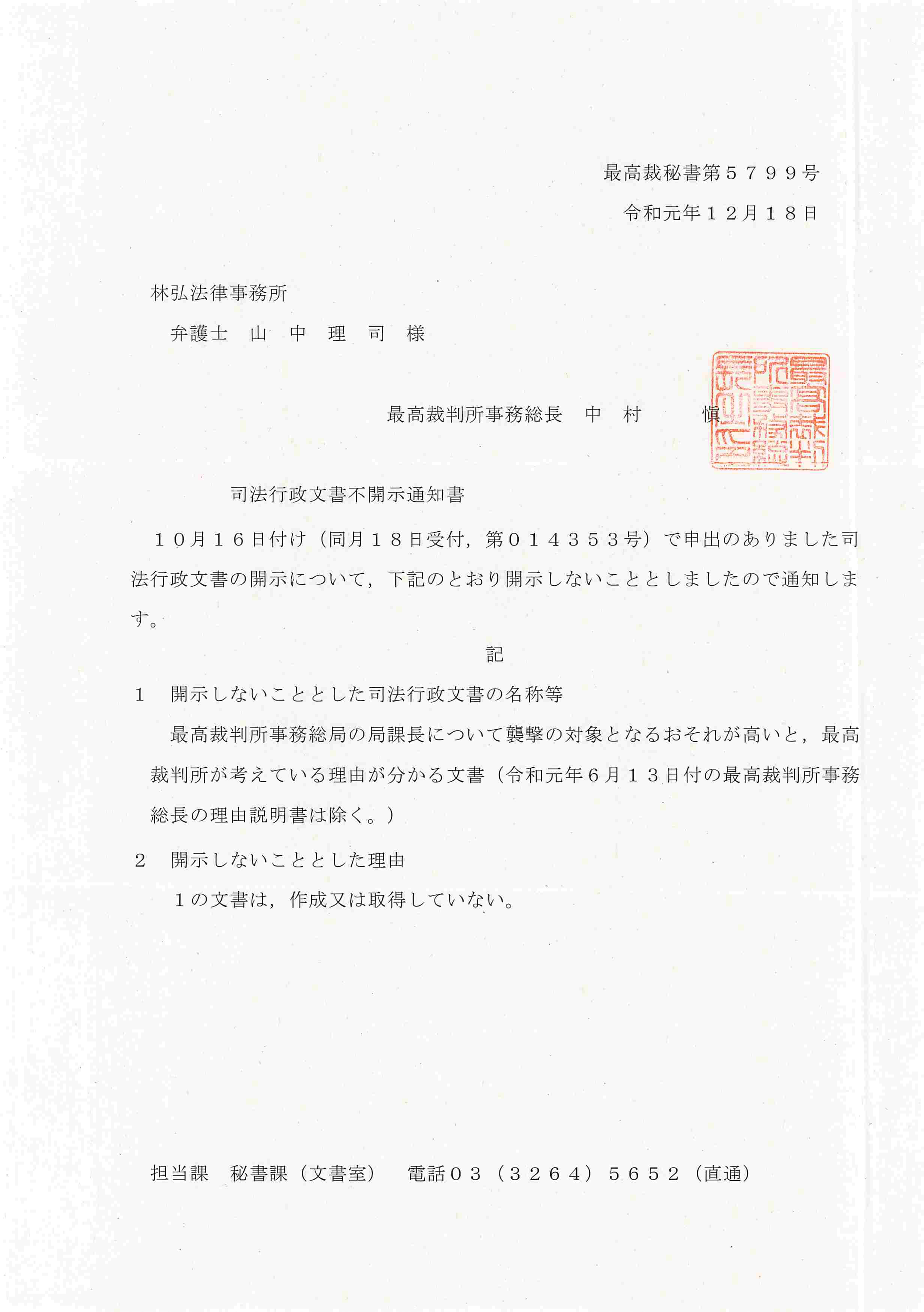 R011205-最高裁の不開示通知書(令和元年10月に裁判官に...