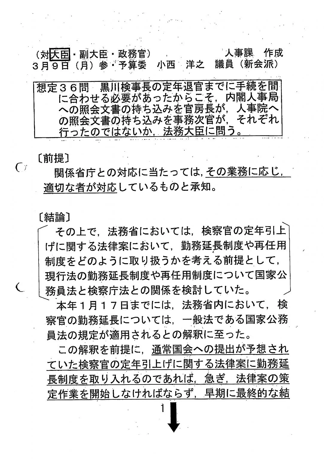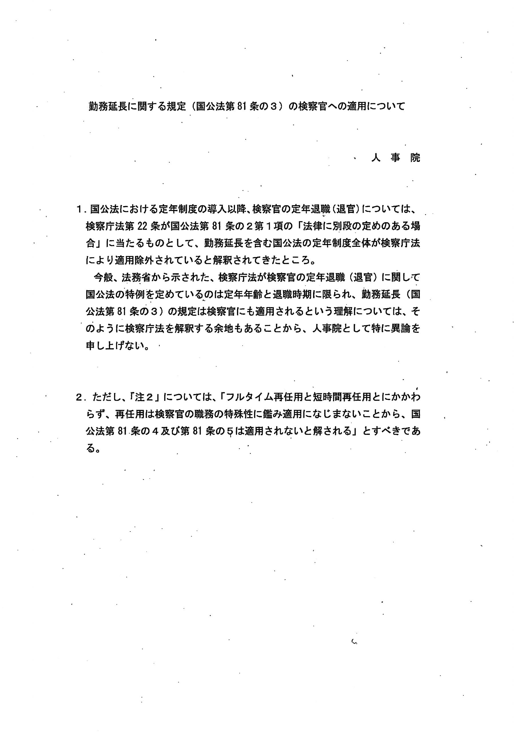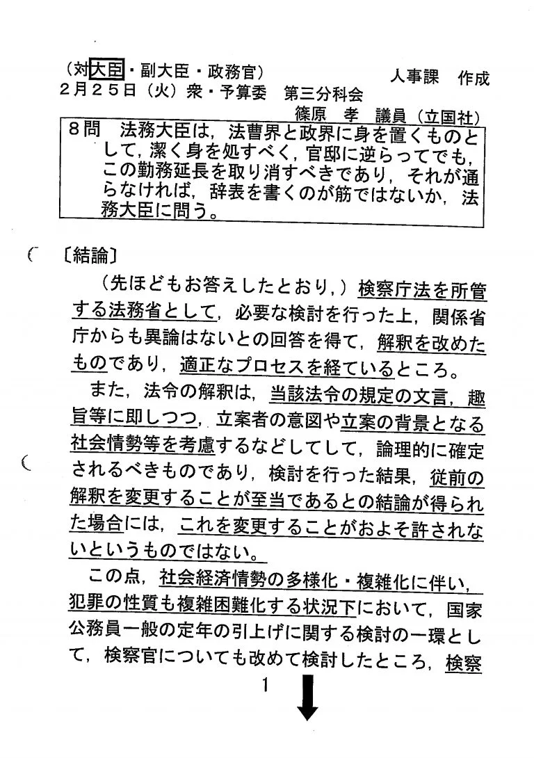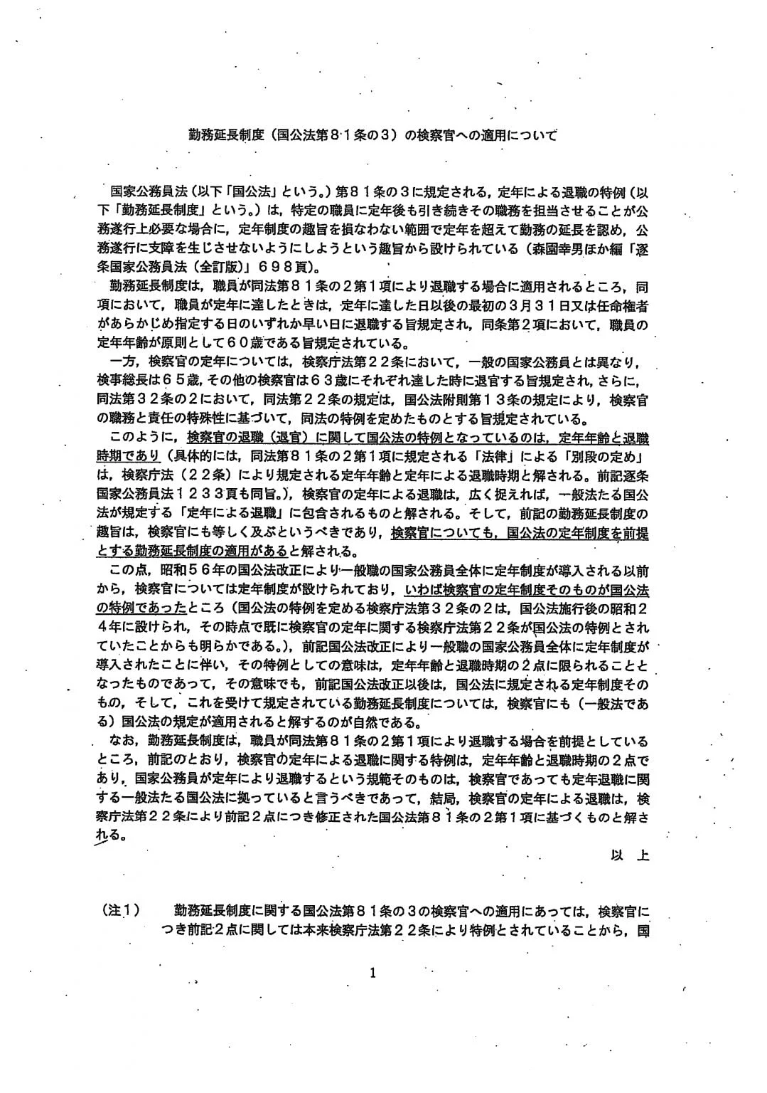 R020225-法務大臣の国会答弁資料(黒川検事庁の延長期間は...