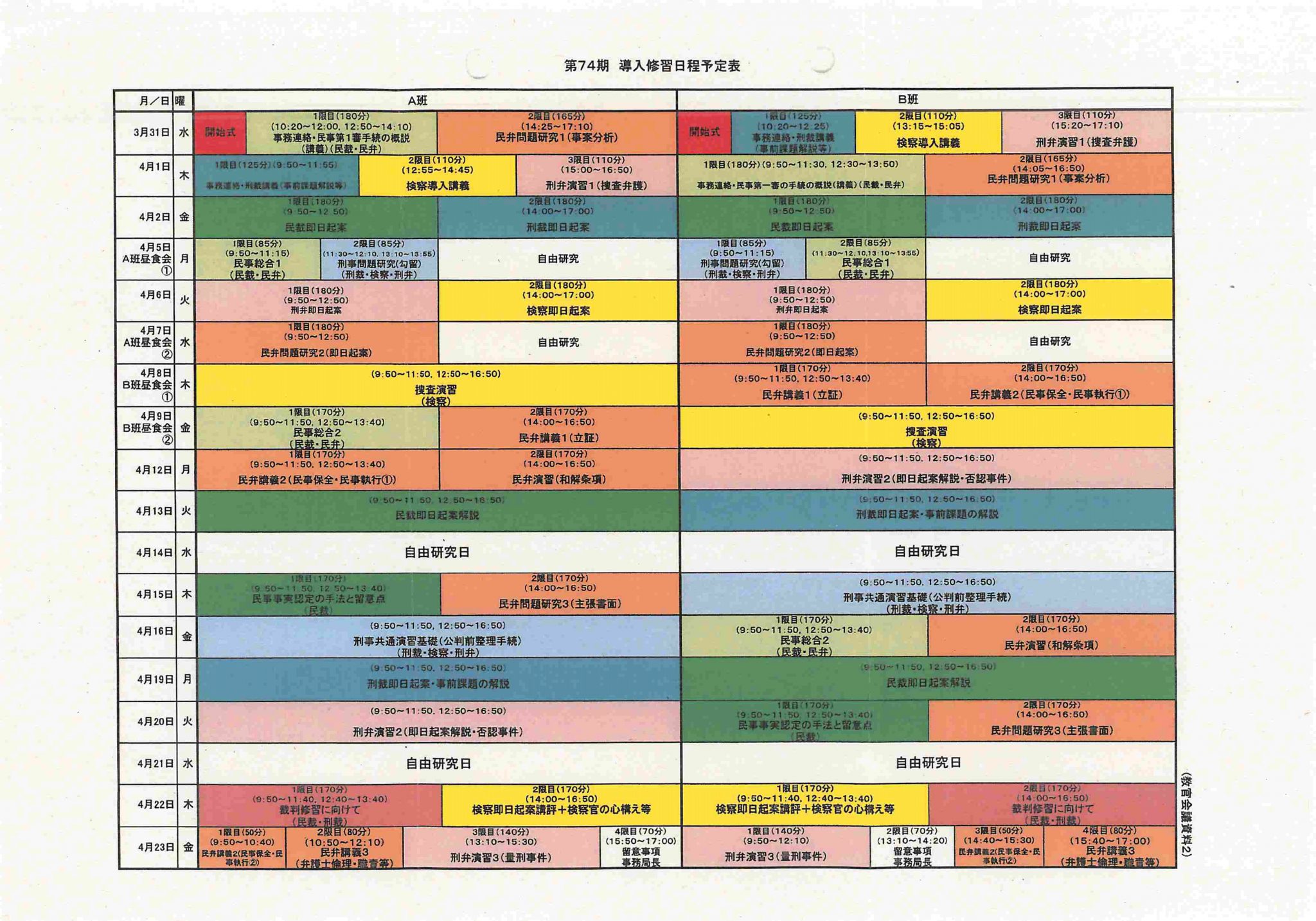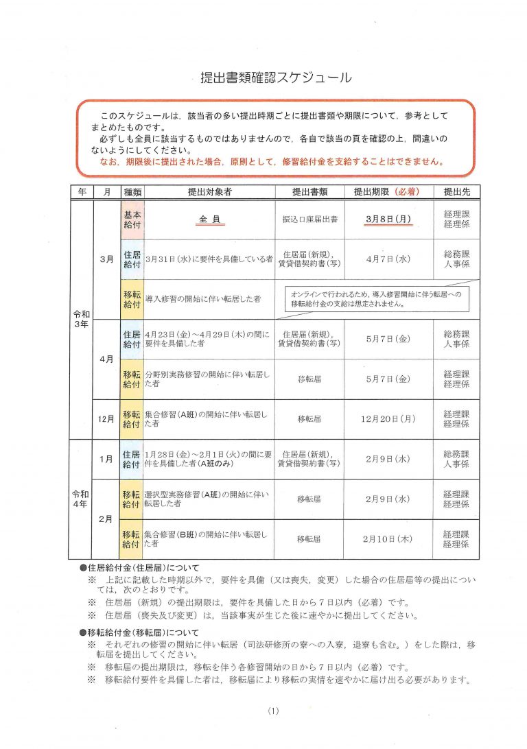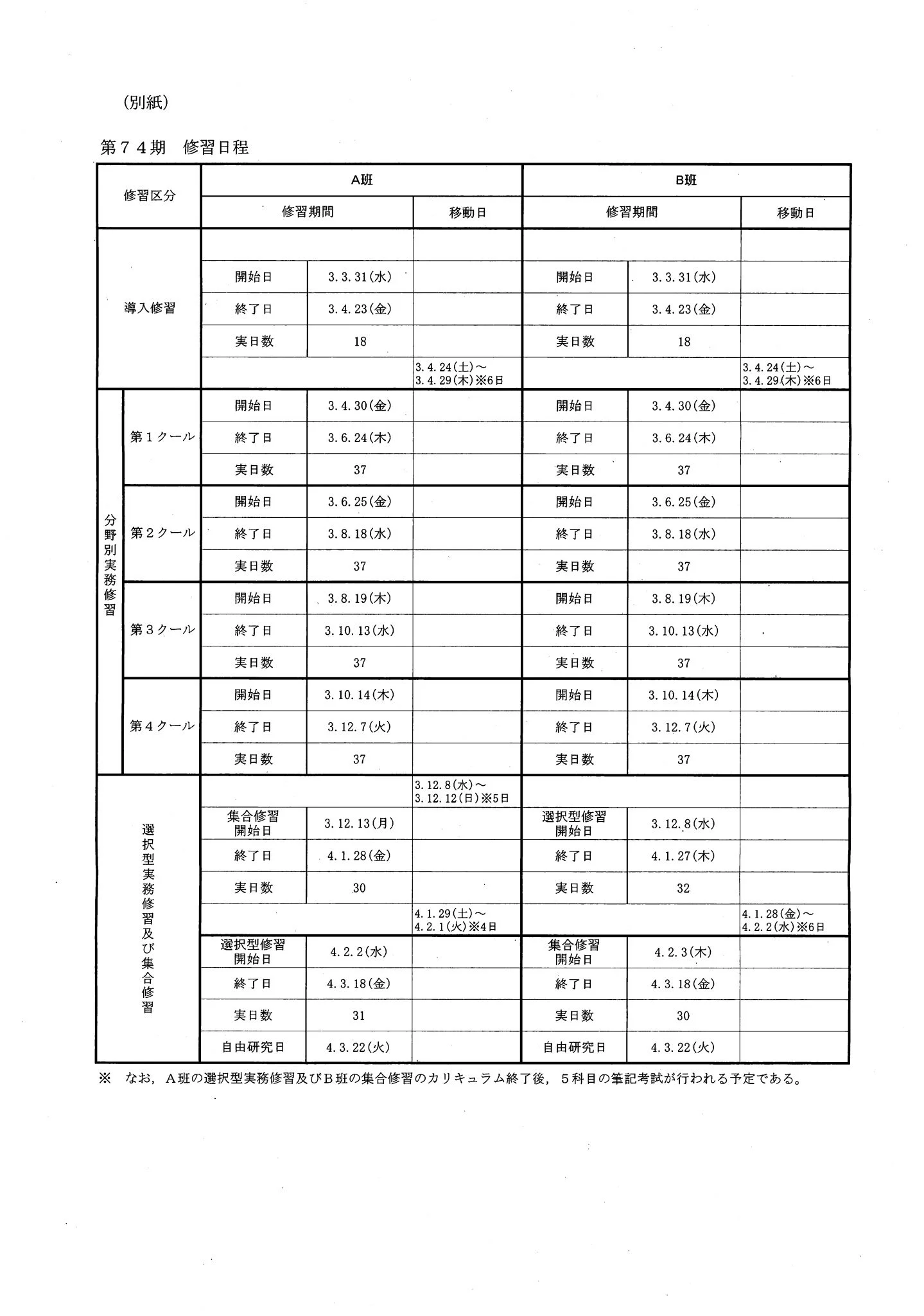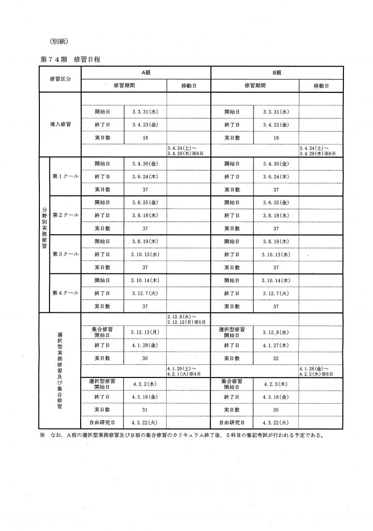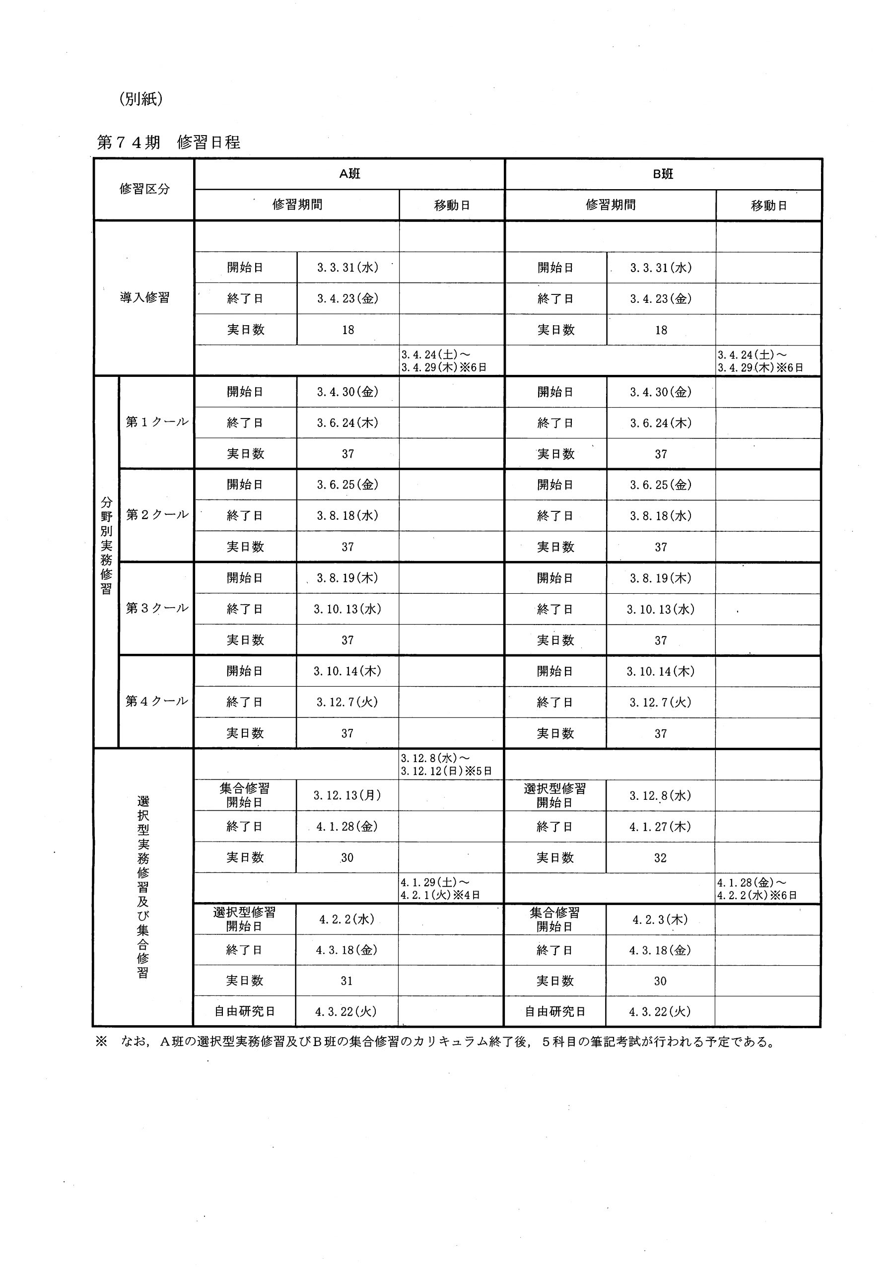 74期司法修習の日程(令和2年10月27日付の司法�...