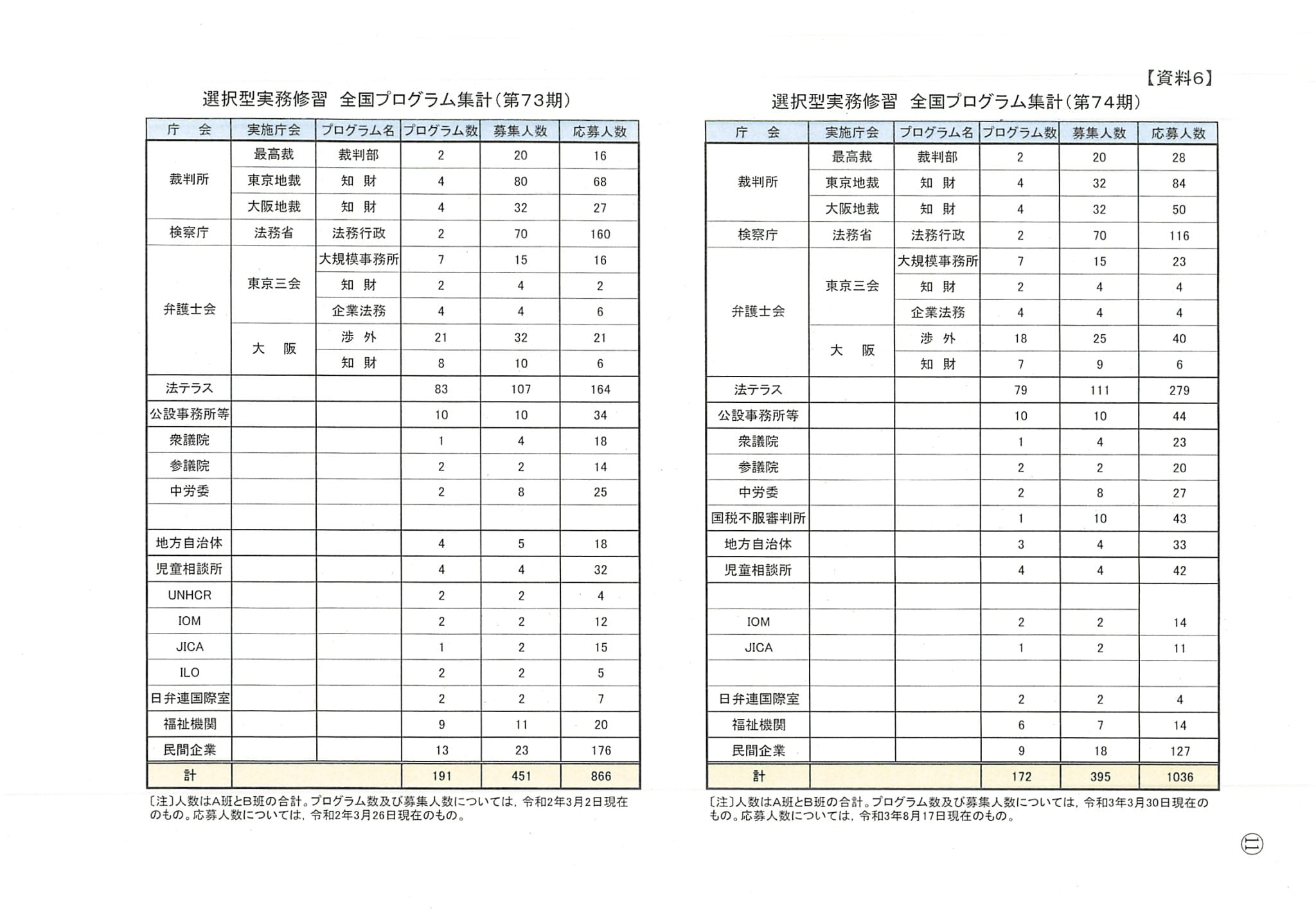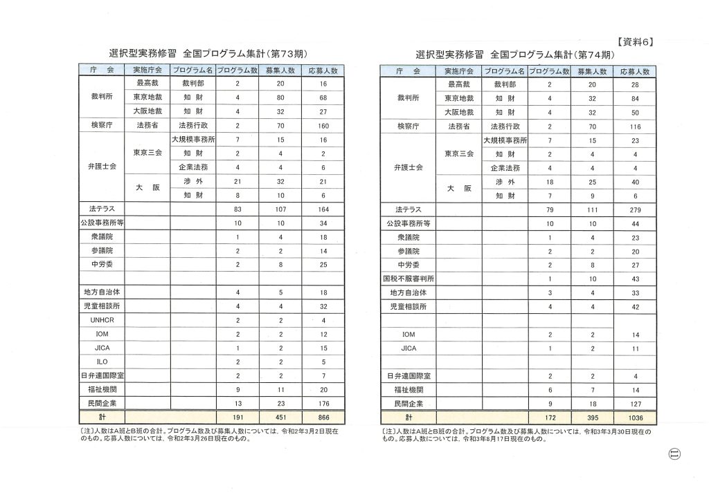 選択型実務修習 全国プログラム集計(73期及び74�...