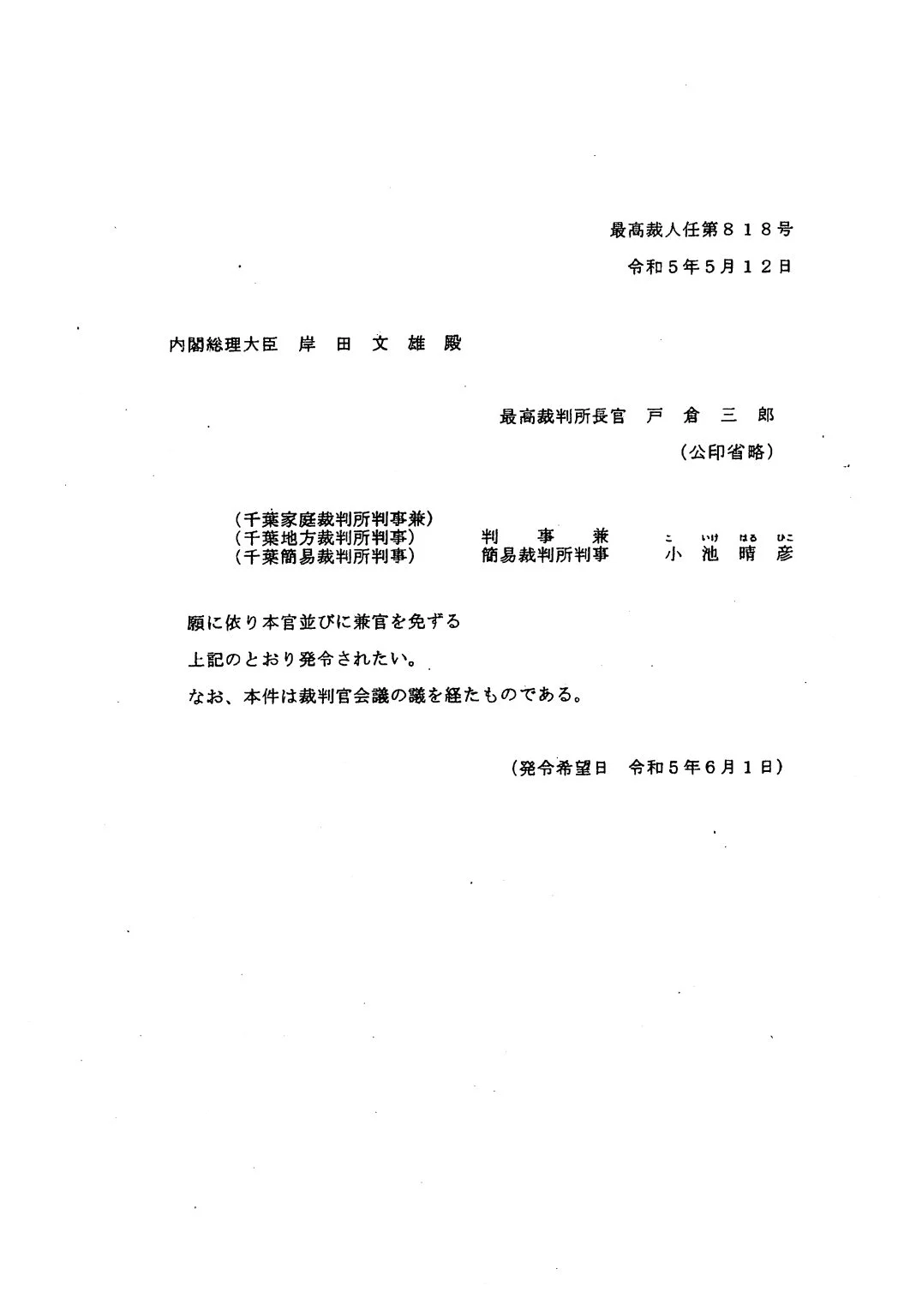 R050525-最高裁の不開示通知書(官報公告では,旧法下で「...