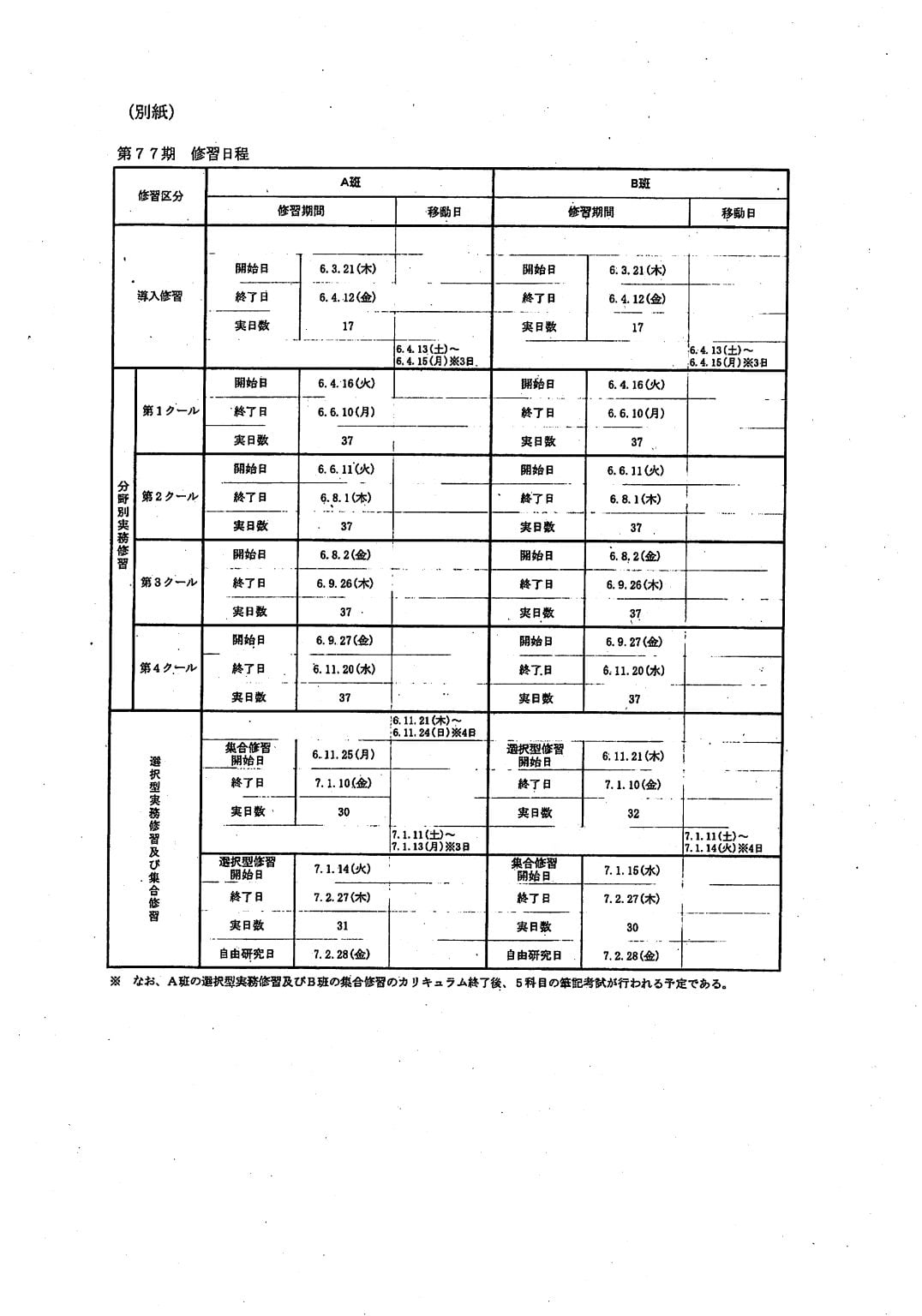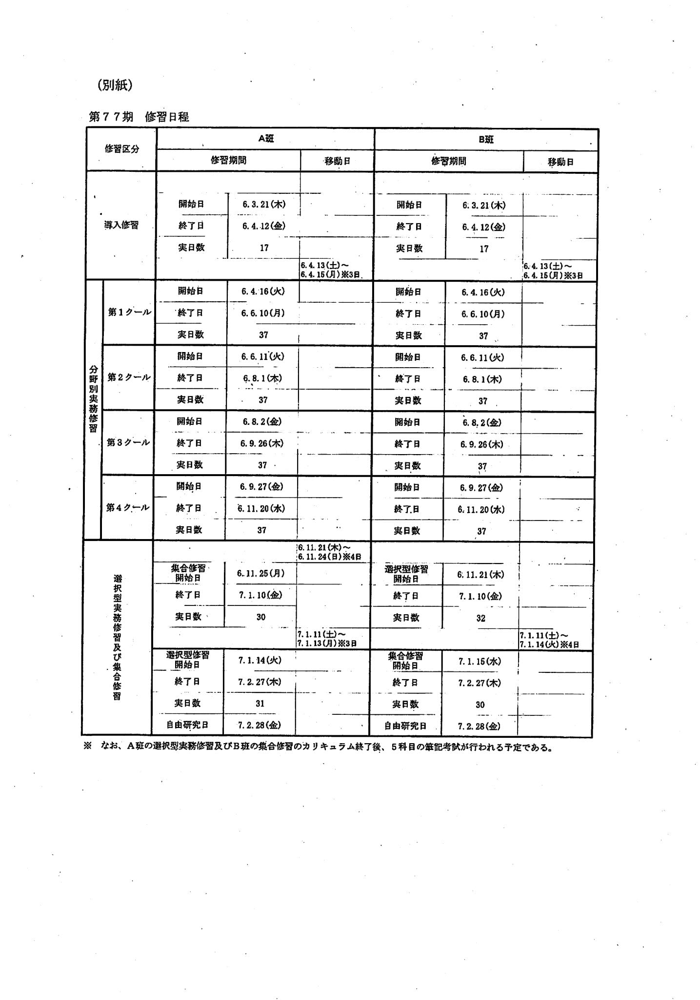 77期司法修習の日程(令和5年2月27日付の司法研�...