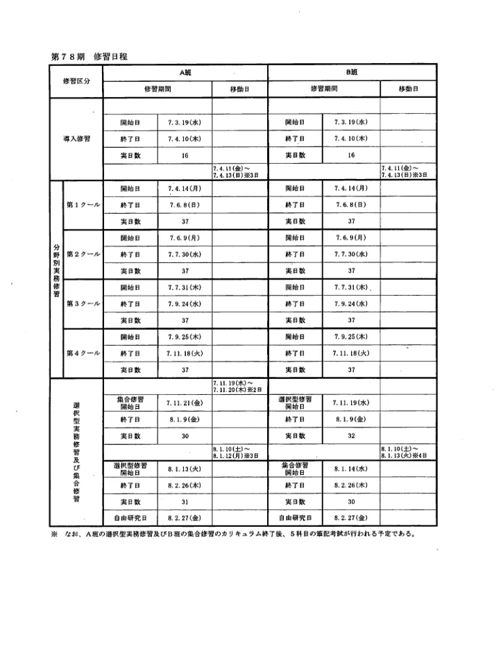78期修習日程(令和6年5月1日付の司法研修所事務�...
